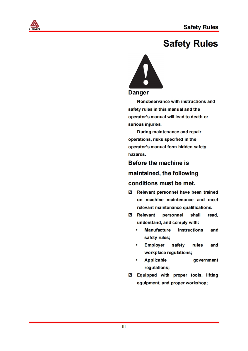 山东临工SC0407E、SC0610E-maintenance-manul维修电器液压手册说明书找手册网3小时前发布关注私信8.02MB105页026山东临工SC0407E、SC0610E-maintenance-manul维修电器液压手册说明书此内容为付费资源,请付费后查看¥29¥31黄金会员免费钻石会员免费立即购买您当前未登录!建议登陆后购买,可保存购买订单付费资源 第1页 / 共105页 第2页 / 共105页 第3页 / 共105页 第4页 / 共105页 第5页 / 共105页 第6页 / 共105页 第7页 / 共105页 第8页 / 共105页 第9页 / 共105页 第10页 / 共105页 试读已结束,还剩95页,您可下载完整版后进行离线阅读 THE END柳工/临工 文本预览 LGMGService and Repair ManualEN280SC0407E、SC0610EMobile ElevatingWork PlatformsPART NO0.5M-2537110011Original Instructions 查看更多 收起部分 喜欢就支持一下吧收藏