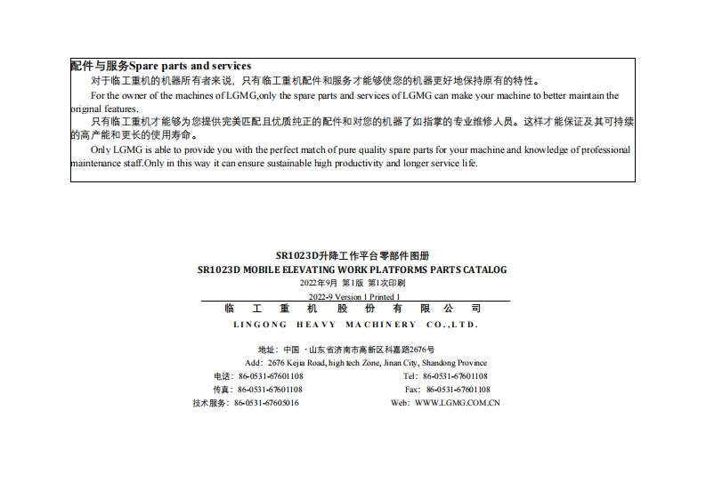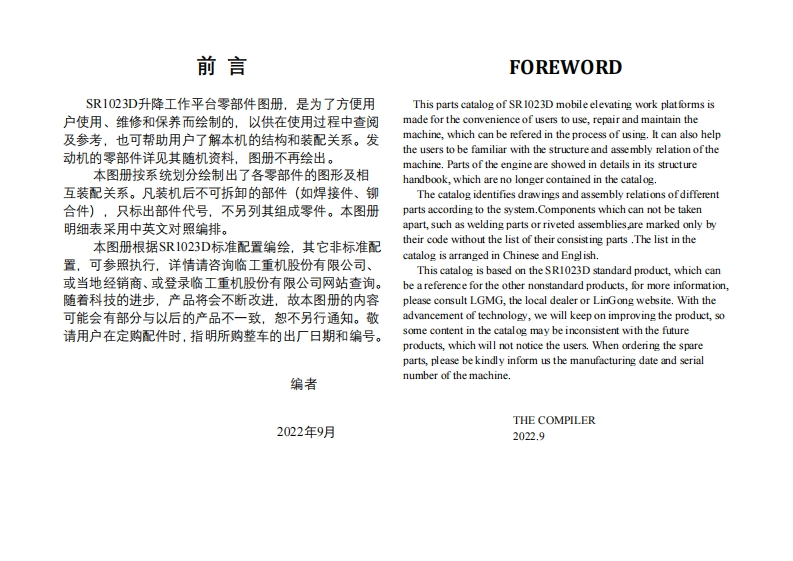 山东临工SR1023D-Parts-Manual零部件目录手册找手册网3小时前发布关注私信17.43MB227页048山东临工SR1023D-Parts-Manual零部件目录手册此内容为付费资源,请付费后查看¥29¥31黄金会员免费钻石会员免费立即购买您当前未登录!建议登陆后购买,可保存购买订单付费资源 第1页 / 共227页 第2页 / 共227页 第3页 / 共227页 第4页 / 共227页 第5页 / 共227页 第6页 / 共227页 第7页 / 共227页 第8页 / 共227页 第9页 / 共227页 第10页 / 共227页 试读已结束,还剩217页,您可下载完整版后进行离线阅读 THE END柳工/临工 文本预览 SR1023D升降工作平台零部件图册SR1023D MOBILE ELEVATING WORK PLATFORMS PARTSCATALOG订货号:S102300WND4NH2001|车号:LWAS100*N0780001-LWJAS100*N0789999临工重机股份有限公司LINGONG HEAVY MACHINERY CO.,LTD. 查看更多 收起部分 喜欢就支持一下吧收藏