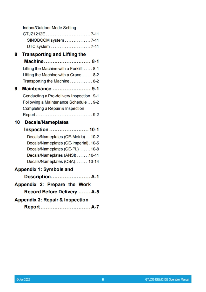 SINOBOOM星邦重工GTJZ1012E1212EOperationManual操作说明书手册-PL找手册网4小时前发布关注私信29.43MB96页033SINOBOOM星邦重工GTJZ1012E1212EOperationManual操作说明书手册-PL此内容为付费资源,请付费后查看¥29¥31黄金会员免费钻石会员免费立即购买您当前未登录!建议登陆后购买,可保存购买订单付费资源 第1页 / 共96页 第2页 / 共96页 第3页 / 共96页 第4页 / 共96页 第5页 / 共96页 第6页 / 共96页 第7页 / 共96页 第8页 / 共96页 第9页 / 共96页 第10页 / 共96页 试读已结束,还剩86页,您可下载完整版后进行离线阅读 THE END宝马格/星邦重工 文本预览 Part No.PL501048100002OperationRev:AJun 2022ManualGTJZ1012E/1012E/3346EGTJZ1212E/1212E/4047Efor Sinoboom PolandCE ANSI AS/NZS④.E[GB≤ssinoBoom 查看更多 收起部分 喜欢就支持一下吧收藏
