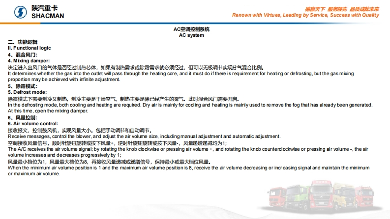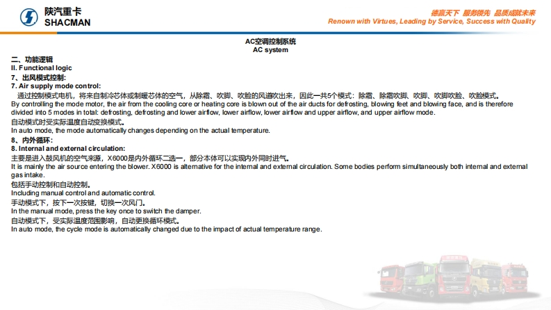 陕汽重卡Shacman-X6000-introduction-to-AC-system找手册网4小时前发布关注私信0.57MB12页021陕汽重卡Shacman-X6000-introduction-to-AC-system此内容为付费资源,请付费后查看¥29¥31黄金会员免费钻石会员免费立即购买您当前未登录!建议登陆后购买,可保存购买订单付费资源 第1页 / 共12页 第2页 / 共12页 第3页 / 共12页 第4页 / 共12页 第5页 / 共12页 第6页 / 共12页 第7页 / 共12页 第8页 / 共12页 第9页 / 共12页 第10页 / 共12页 试读已结束,还剩2页,您可下载完整版后进行离线阅读 THE END小松/陕汽 文本预览 陕汽重卡德赢天下服房领先品质就未来SHACMANRenown with Virtues,Leading by Service,Success with Quality..AC空调控制系统AC system2023年4月April 2023 查看更多 收起部分 喜欢就支持一下吧收藏