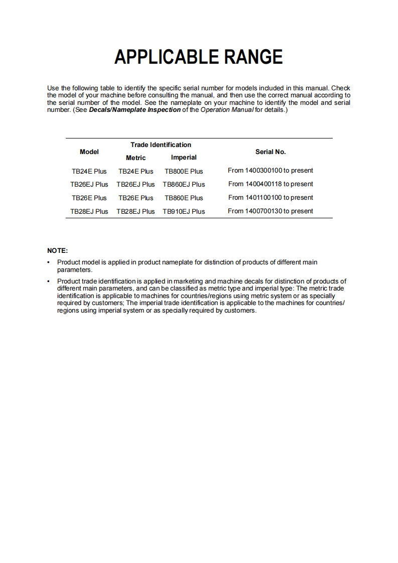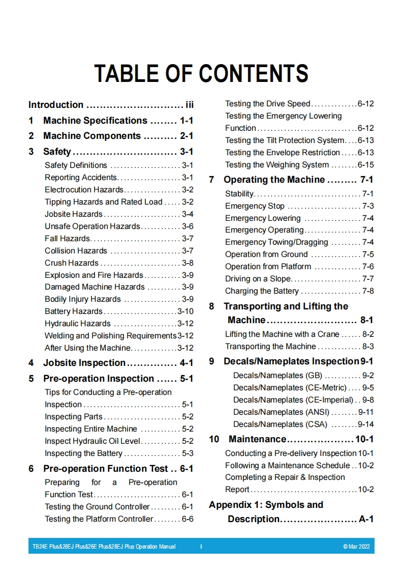 SINOBOOM星邦重工TB24E26EJ26E28EJPlusOperationManual操作说明书手册找手册网4小时前发布关注私信23.89MB108页047SINOBOOM星邦重工TB24E26EJ26E28EJPlusOperationManual操作说明书手册此内容为付费资源,请付费后查看¥29¥31黄金会员免费钻石会员免费立即购买您当前未登录!建议登陆后购买,可保存购买订单付费资源 第1页 / 共108页 第2页 / 共108页 第3页 / 共108页 第4页 / 共108页 第5页 / 共108页 第6页 / 共108页 第7页 / 共108页 第8页 / 共108页 第9页 / 共108页 第10页 / 共108页 试读已结束,还剩98页,您可下载完整版后进行离线阅读 THE END宝马格/星邦重工 文本预览 Part No.514004100002OperationRev:BMar 2022ManualTB24E Plus/TB800E PlusTB26EJ Plus/TB860EJ PlusTB26E Plus/TB850E PlusTB28EJ Plus/TB910EJ PlusC€awSGBsinoBoom 查看更多 收起部分 喜欢就支持一下吧收藏