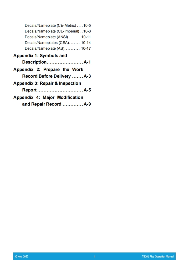 SINOBOOM星邦重工TB26JPlusOperationManual操作说明书手册找手册网4小时前发布关注私信26.97MB108页034SINOBOOM星邦重工TB26JPlusOperationManual操作说明书手册此内容为付费资源,请付费后查看¥29¥31黄金会员免费钻石会员免费立即购买您当前未登录!建议登陆后购买,可保存购买订单付费资源 第1页 / 共108页 第2页 / 共108页 第3页 / 共108页 第4页 / 共108页 第5页 / 共108页 第6页 / 共108页 第7页 / 共108页 第8页 / 共108页 第9页 / 共108页 第10页 / 共108页 试读已结束,还剩98页,您可下载完整版后进行离线阅读 THE END宝马格/星邦重工 文本预览 Part No.505064100002OperationRev:CNov.2022ManualTB26J Plus/TB860J PlusCEws1④.EHl[GBSIn▣B▣om 查看更多 收起部分 喜欢就支持一下吧收藏