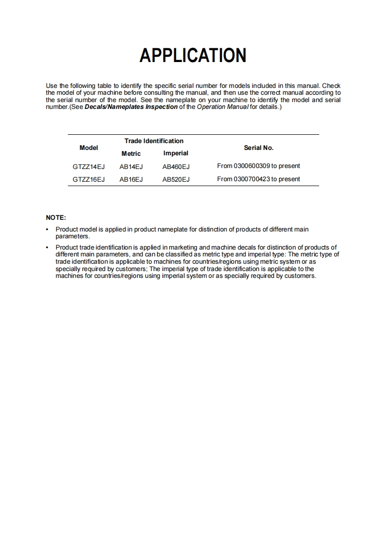 SINOBOOM星邦重工VB-GTZZ14EJ16EJMaintenanceManual维修维护说明书手册找手册网4小时前发布关注私信12.29MB120页025SINOBOOM星邦重工VB-GTZZ14EJ16EJMaintenanceManual维修维护说明书手册此内容为付费资源,请付费后查看¥29¥31黄金会员免费钻石会员免费立即购买您当前未登录!建议登陆后购买,可保存购买订单付费资源 第1页 / 共120页 第2页 / 共120页 第3页 / 共120页 第4页 / 共120页 第5页 / 共120页 第6页 / 共120页 第7页 / 共120页 第8页 / 共120页 第9页 / 共120页 第10页 / 共120页 试读已结束,还剩110页,您可下载完整版后进行离线阅读 THE END宝马格/星邦重工 文本预览 Part No.503007110002MaintenanceRev:BDec2021ManualGTZZ14EJ/AB14EJ/AB460EJGTZZ16EJ/AB16EJ/AB520EJC∈ANSI AS/NZS④.ERL GB≤ssinoBoom 查看更多 收起部分 喜欢就支持一下吧收藏
