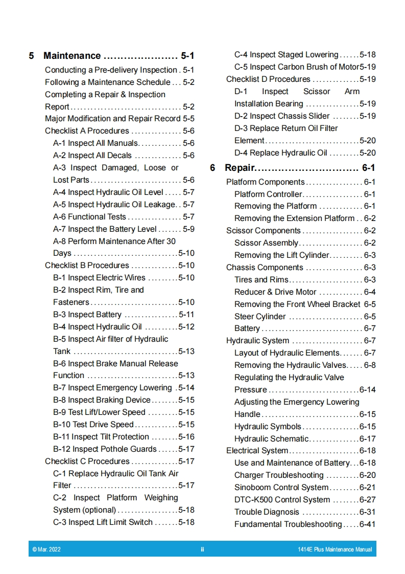 星邦重工SINOBOOM-1414E-Plus4655E-Plus维修说明书手册找手册网3小时前发布关注私信11.26MB120页022星邦重工SINOBOOM-1414E-Plus4655E-Plus维修说明书手册此内容为付费资源,请付费后查看¥29¥31黄金会员免费钻石会员免费立即购买您当前未登录!建议登陆后购买,可保存购买订单付费资源 第1页 / 共120页 第2页 / 共120页 第3页 / 共120页 第4页 / 共120页 第5页 / 共120页 第6页 / 共120页 第7页 / 共120页 第8页 / 共120页 第9页 / 共120页 第10页 / 共120页 试读已结束,还剩110页,您可下载完整版后进行离线阅读 THE END宝马格/星邦重工 文本预览 Part No.501063110002MaintenanceRev:BMar.2022Manual1414E Plus/4655E PlusC∈ANSI AS/NZS①.GBsinoBoom 查看更多 收起部分 喜欢就支持一下吧收藏