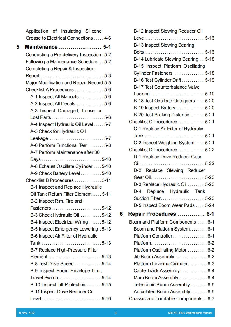 星邦重工SINOBOOM-AB22EJ-PlusAB710EJ-Plus维修说明书手册找手册网3小时前发布关注私信13.57MB138页039星邦重工SINOBOOM-AB22EJ-PlusAB710EJ-Plus维修说明书手册此内容为付费资源,请付费后查看¥29¥31黄金会员免费钻石会员免费立即购买您当前未登录!建议登陆后购买,可保存购买订单付费资源 第1页 / 共138页 第2页 / 共138页 第3页 / 共138页 第4页 / 共138页 第5页 / 共138页 第6页 / 共138页 第7页 / 共138页 第8页 / 共138页 第9页 / 共138页 第10页 / 共138页 试读已结束,还剩128页,您可下载完整版后进行离线阅读 THE END宝马格/星邦重工 文本预览 Part No.503009110002MaintenanceRev:BNov.2022ManualAB22EJ Plus/AB710EJ PlusCE GB ERLsinoBoom 查看更多 收起部分 喜欢就支持一下吧收藏