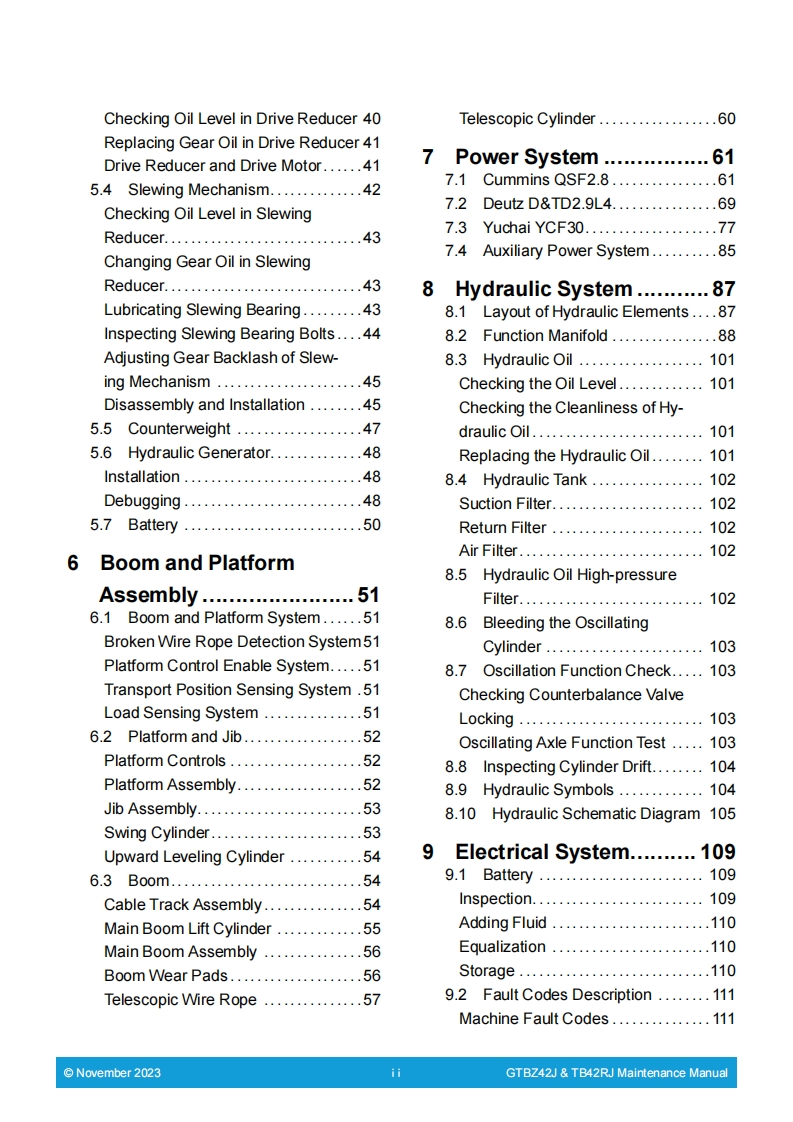 星邦重工SINOBOOM-GTBZ42JTB42RJTB1370RJ维修说明书手册找手册网3小时前发布关注私信31.37MB173页041星邦重工SINOBOOM-GTBZ42JTB42RJTB1370RJ维修说明书手册此内容为付费资源,请付费后查看¥29¥31黄金会员免费钻石会员免费立即购买您当前未登录!建议登陆后购买,可保存购买订单付费资源 第1页 / 共173页 第2页 / 共173页 第3页 / 共173页 第4页 / 共173页 第5页 / 共173页 第6页 / 共173页 第7页 / 共173页 第8页 / 共173页 第9页 / 共173页 第10页 / 共173页 试读已结束,还剩163页,您可下载完整版后进行离线阅读 THE END宝马格/星邦重工 文本预览 Manual No:505044110002-ENManual Version:BMaintenanceNovember 2023Translated versionManualGTBZ42J/TB42RJ/TB1370RJTB42RJ/TB1370RJGB CESIn▣B▣om 查看更多 收起部分 喜欢就支持一下吧收藏