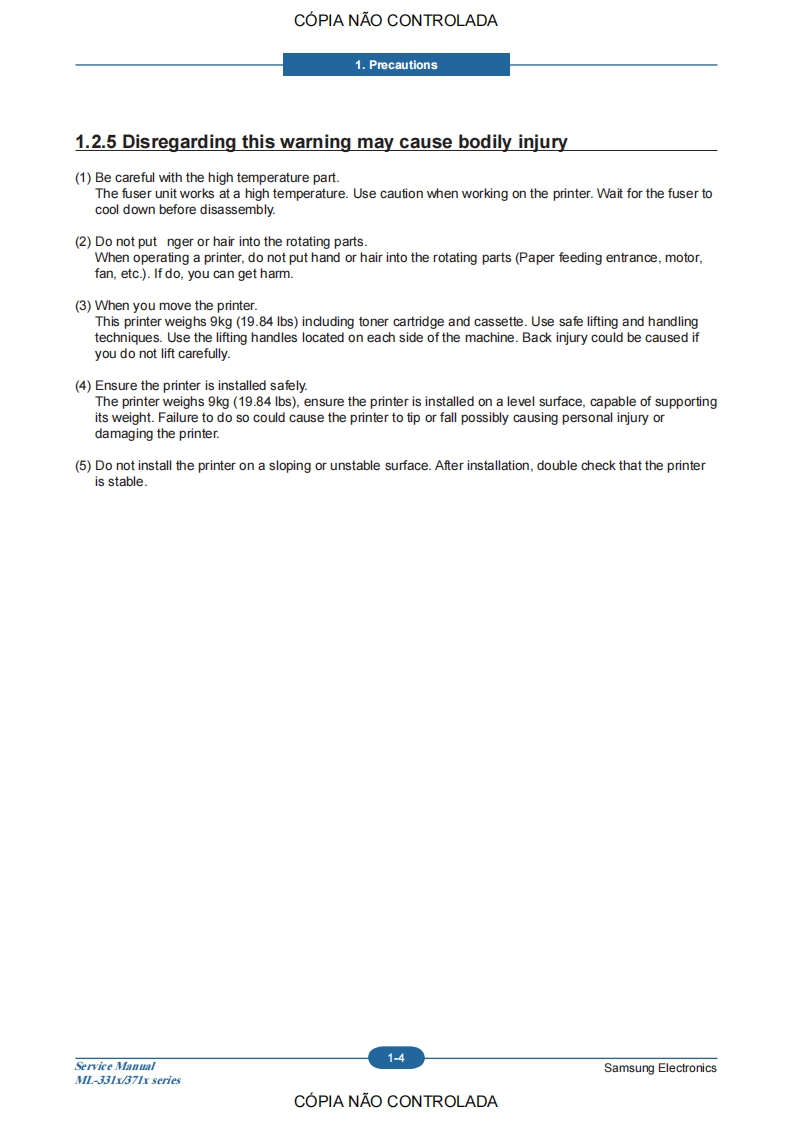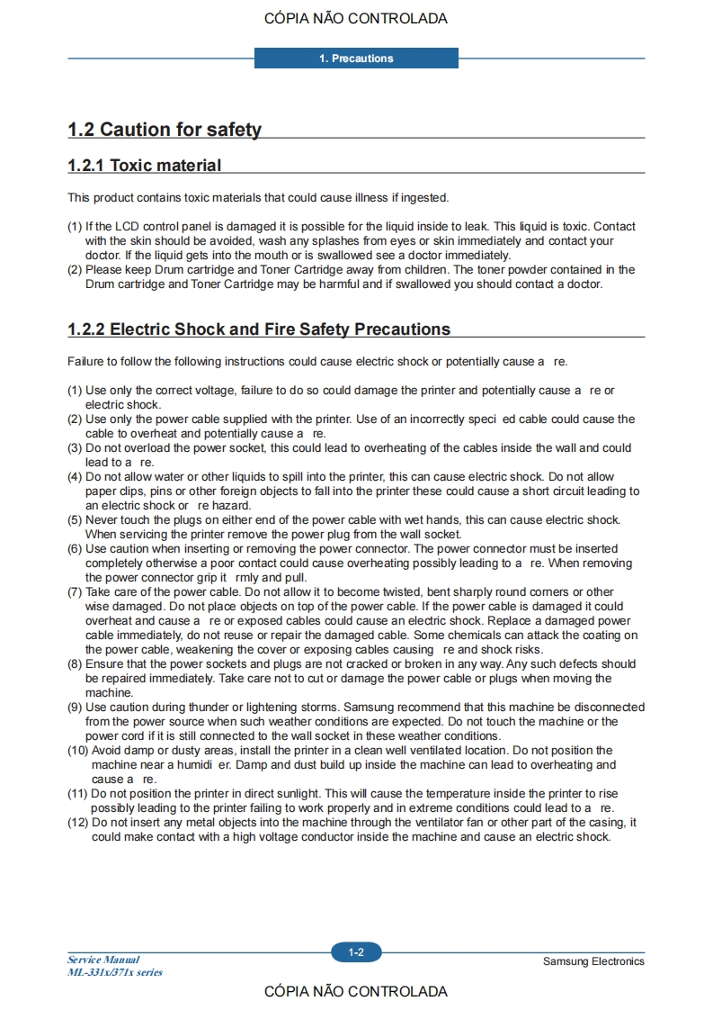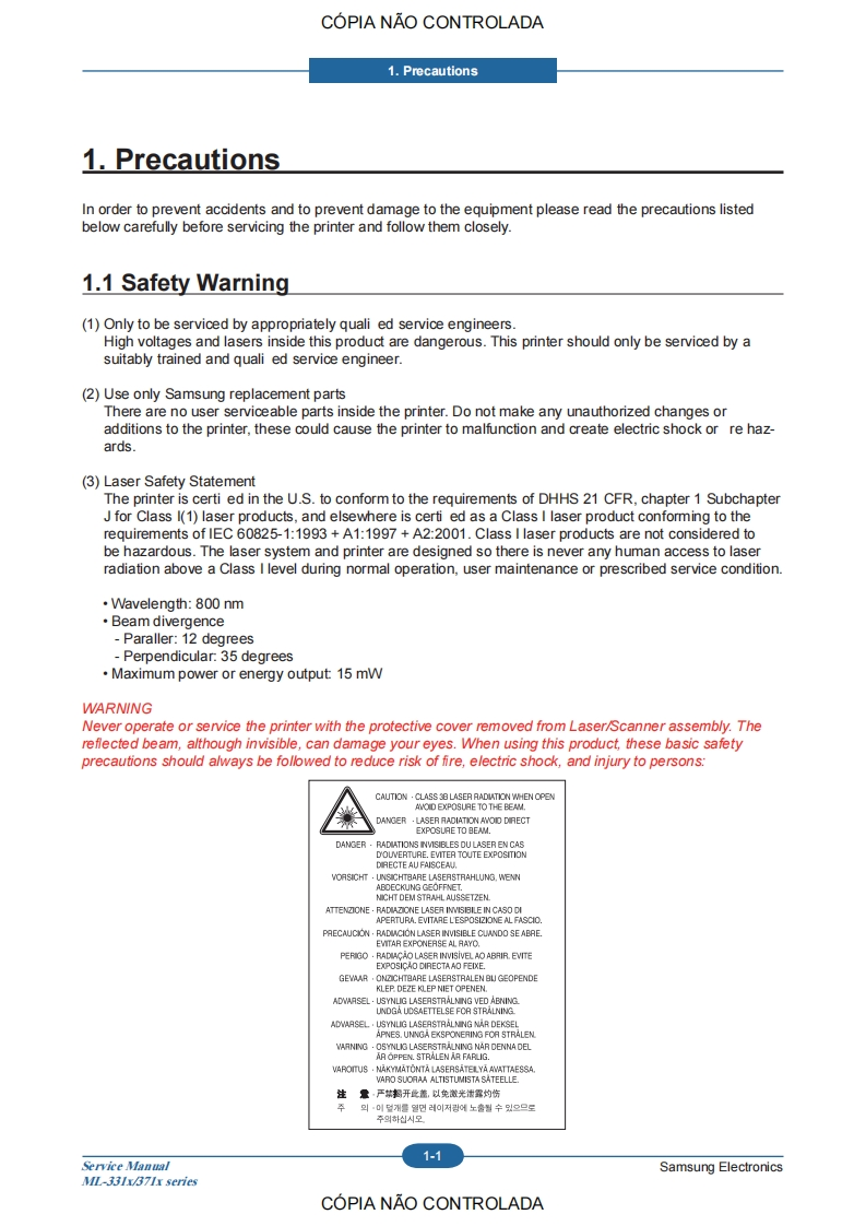 COPIA NAO CONTROLADASAMSUNGaolnuasService manaalManuaice ManuaDIGITAL LASER PRINTERML-331x/ML-371x SeriesML-331xD/331xND/371xD/371xND/371xDW●●1.Speed4.Memory (Std Max)ML-331x series 31 ppm in A4/33 ppm in LetterML-331x series 64 MB 64 MBML-371x series:35 ppm in A4 37 ppm in Letter·ML-371XD:64MB/320MBML-371xND/371xDW 128 MB/384 MB2.Processor5.InterfacesML-331x series:375 MHz●ML-371x series 600 MHz.High Speed USB 2.010/100 BaseTX network connector (ML-331xND).10/100/1000 BaseTX network connector (ML-371xND/371xDW)3.Printer Languages.802.11b/g/n wireless LAN (ML-371xDW)ML-331x series:SPL,PCL5eIEEE 1284 Parallel (Optional)ML-371x series:PCL6/5e.PostsScript3.IBMProPrinter.EPSON6.Toner Cartridge (Initial Sales)ML-331x series 2K/2K,5KML-371x series 5K/2K.5K.10KCOPIA NAO CONTROLADA