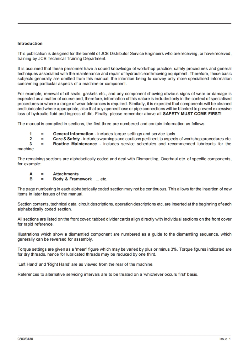 General Information1Care Safety2Routine Maintenance⑧3HYDRAPOWERAttachmentsABody FrameworkBElectricsCServiceControlsDManualHydraulics801.4E801.5GearboxesF801.6Track Running GearJEngineLPUBLISHED BY THETECHNICAL PUBLICATIONS DEPARTMENTOF JCB HYDRAPOWER LTD:RIVERSIDE.RUGELEY.STAFFORDSHIRE WS15 2WA,ENGLANDTel.RUGELEY(01 889)572700PRINTED IN ENGLANDPublication No.9803/3130 Issue 1