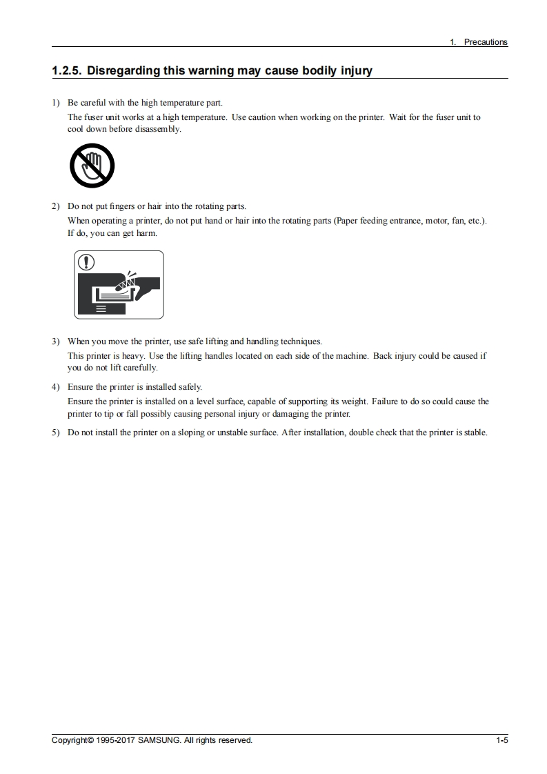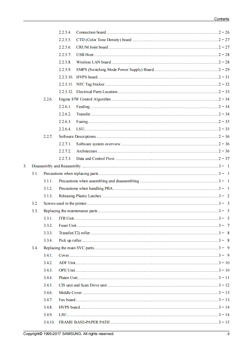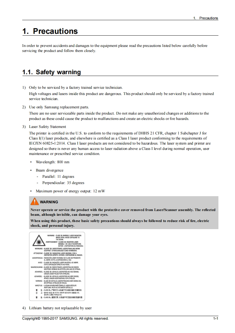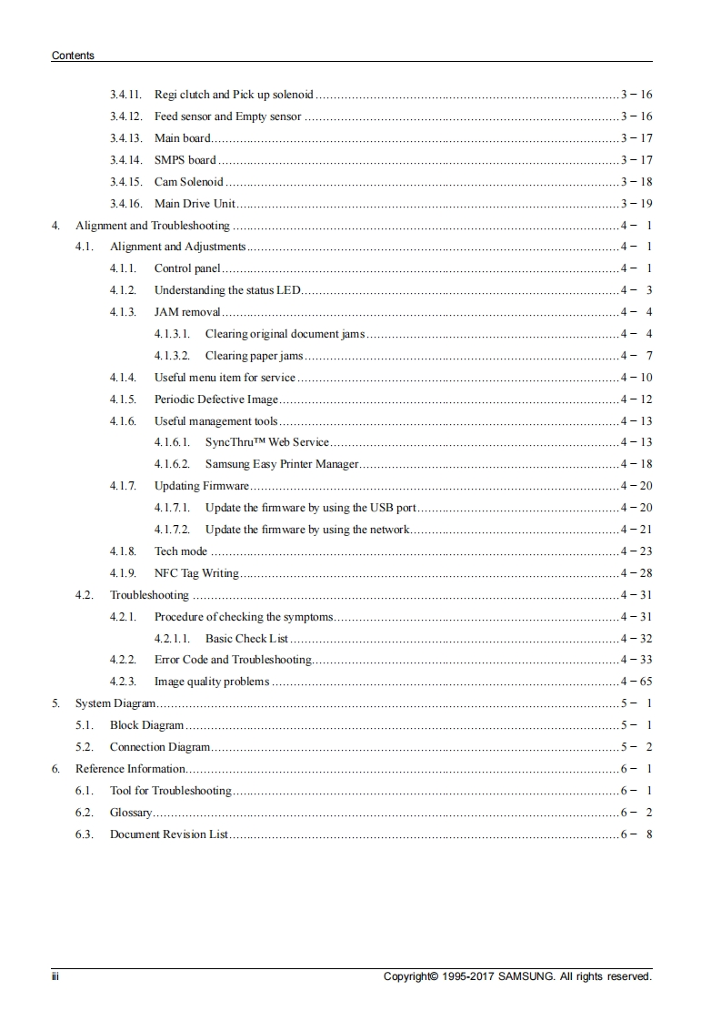 SAMSUNGColor Laser MFPXpress C480 seriesSL-C480/C480W/C480FN/C480FWNer1.01)SERVICEMANUALColor Laser MFPContents1.Precautions2.Product specification and description3.Disassembly and Reassembly4.Alignment and Troubleshooting5.System DiagramSAMSUNG6.Reference InformationRefer to the service manual in the GSPN(see the rear cover)for more information.