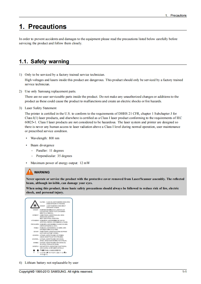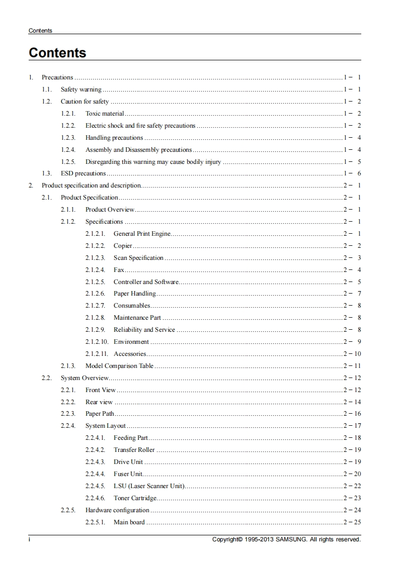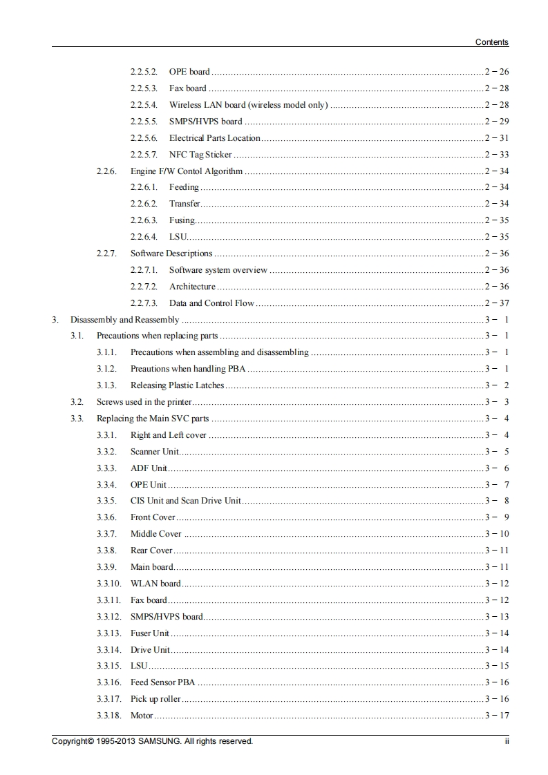SAMSUNGMono Laser MFPXpress M2070 seriesM2070/M2070W/M2070F/M2070FWVer1.01)SERVICEMANUALMono Laser MFPContents1.Precautions2.Product specification and description3.Disassembly and Reassembly4.Alignment and Troubleshooting5.System DiagramM2070M2070W6.Reference Information一1p周M2070FM2070FWRefer to the service manual in the GSPN(see the rear cover)for more information.