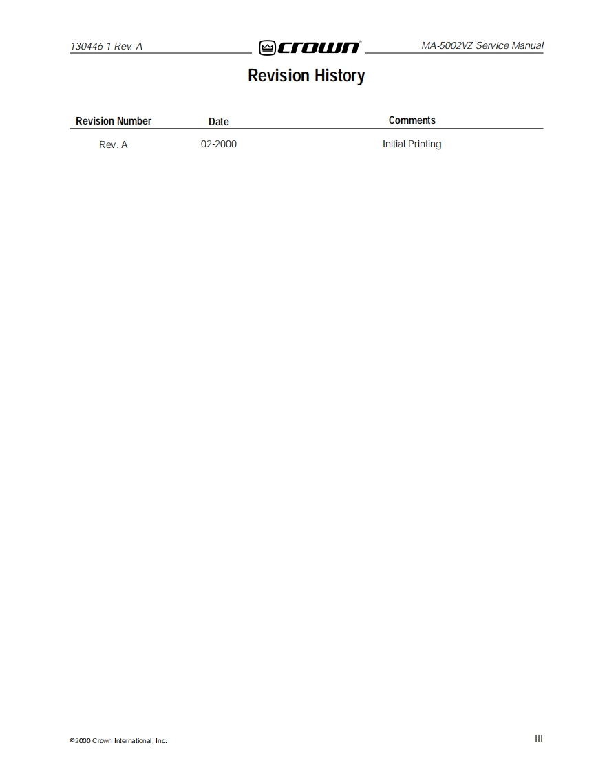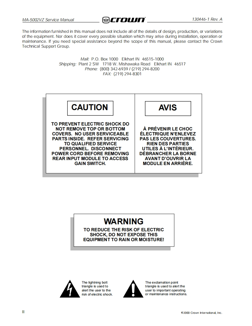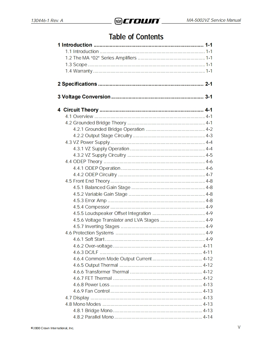 CROWN-MA-5002VZ-维修操作说明书手册-MA5002VZ_SM_130446-1