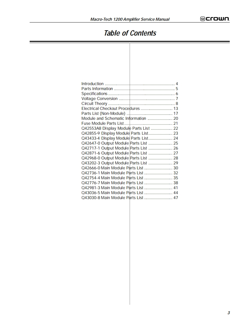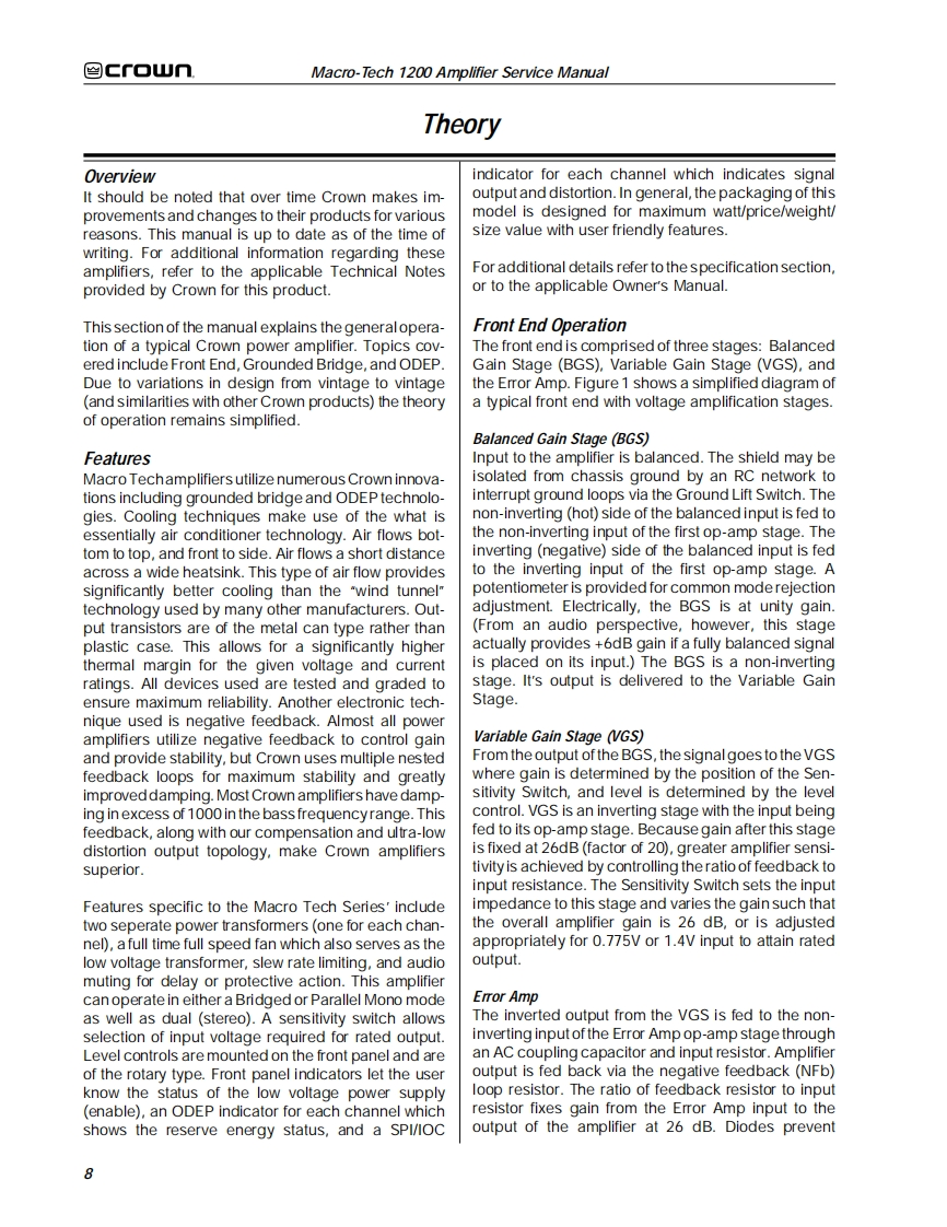 兰GT▣UTHE PROFESSIONAL AUDIO DIVISION OF CROWN INTERNATIONAL.INC.POWER AMPLIFIERSERVICE MANUALMACRO-TECH-12001996 by CROWN INTERNATIONAL,INC.Mailing Address.Shipping Address:P.0.Box100057620C.R.105Elkhart.IN U.S.A.46515-1000Elkhart,INU.S.A.46517Macro-Teche,ODEP and Crown are registered trademarks of Crown International,Inc.K-SVCMA122.96