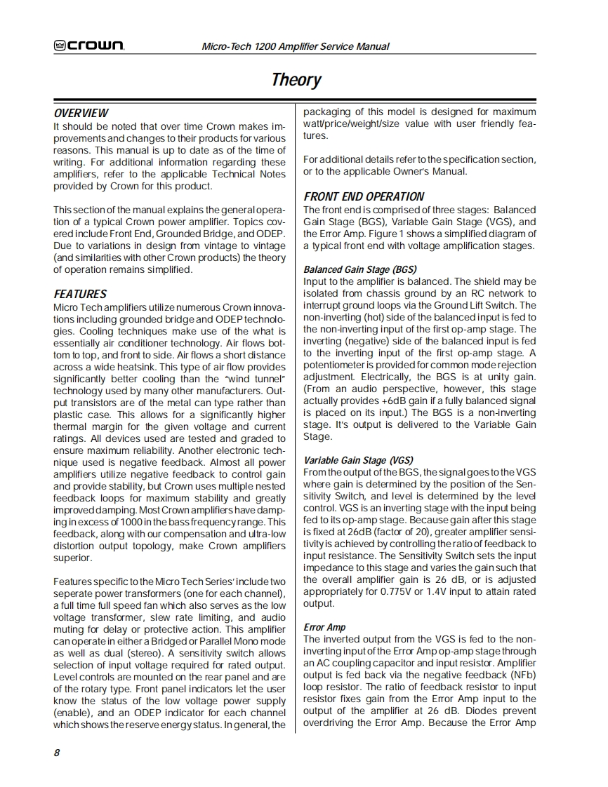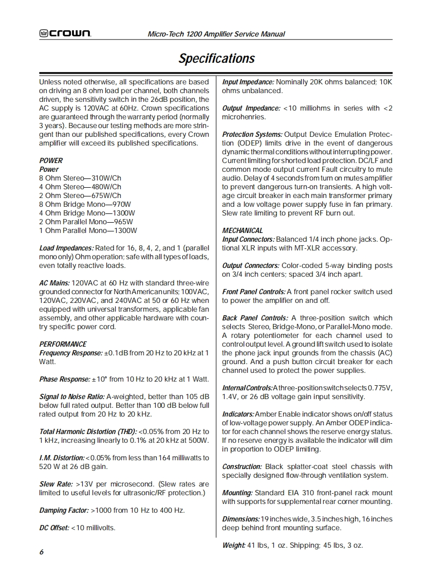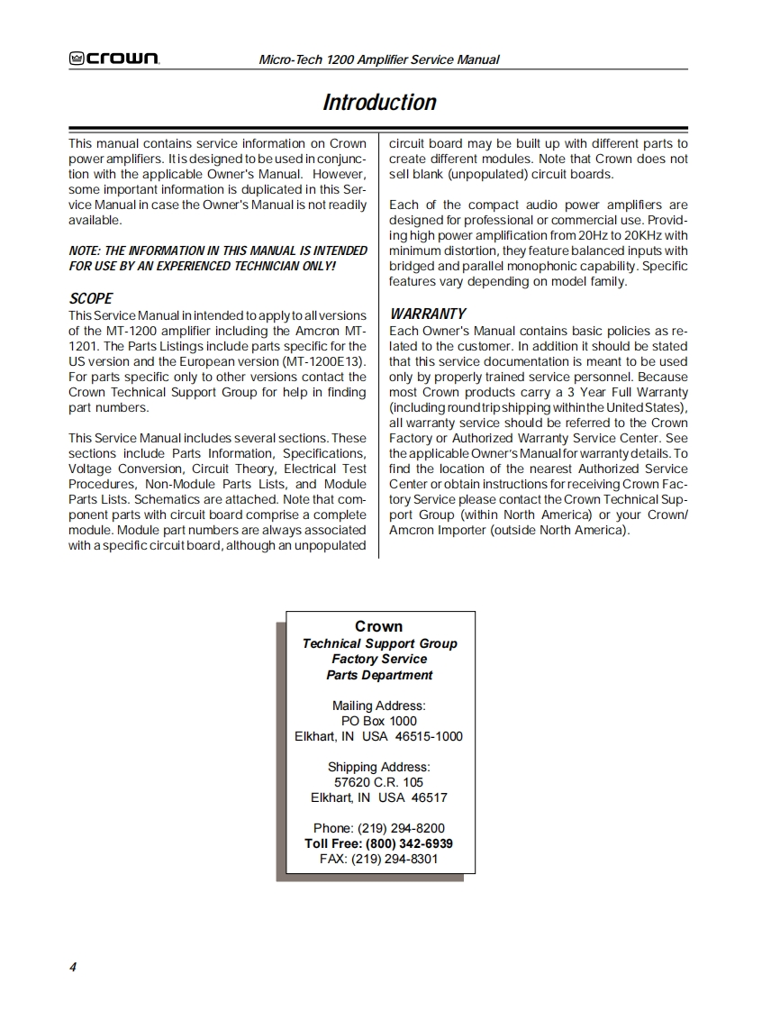 ≌Gf▣UUnTHE PROFESSIONAL AUDIO DIVISION OF CROWN INTERNATIONAL.INC.POWER AMPLIFIERSERVICE MANUALMICRO-TECH°-12001995 by CROWN INTERNATIONAL,INC.Mailing Address.Shipping Address:P.0.Box100057620C.R.105Elkhart.IN U.S.A.46515-1000Elkhart,IN U.S.A.46517Micro-Tech,ODEP and Crown are registered trademarks of Crown International,Inc.K-SVCMT128-95