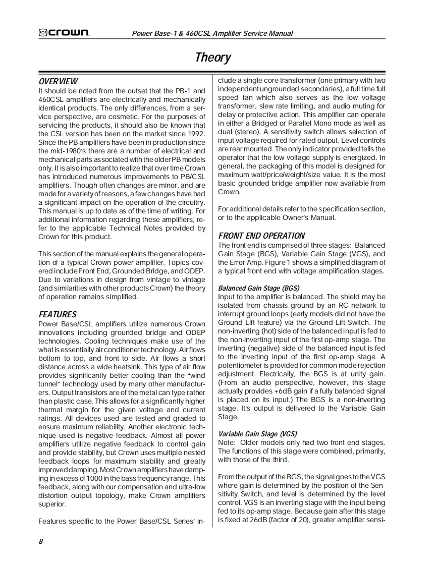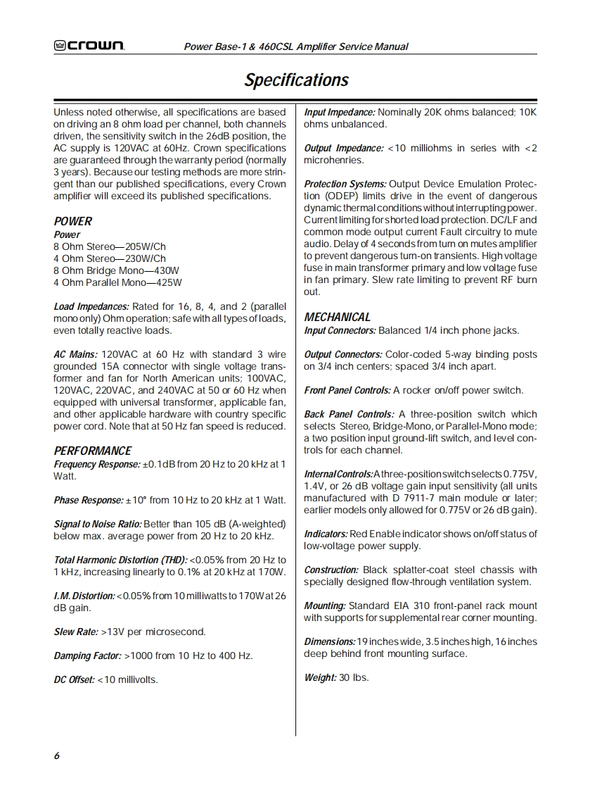 ≌Gf▣UnTHE PROFESSIONAL AUDIO DIVISION OF CROWN INTERNATIONAL,INCPOWER AMPLIFIERSERVICE MANUALPOWER BASE-1°&460CSL1995 by CROWN INTERNATIONAL,INC.Mailing Address.Shipping Address:P.0.Box100057620C.R.105Elkhart.IN U.S.A.46515-1000Elkhart,IN U.S.A.46517CSLis a trademark and Power Base-1,ODEP and Crown are registered trademarks of Crown International,Inc.K-SVCPB11.95