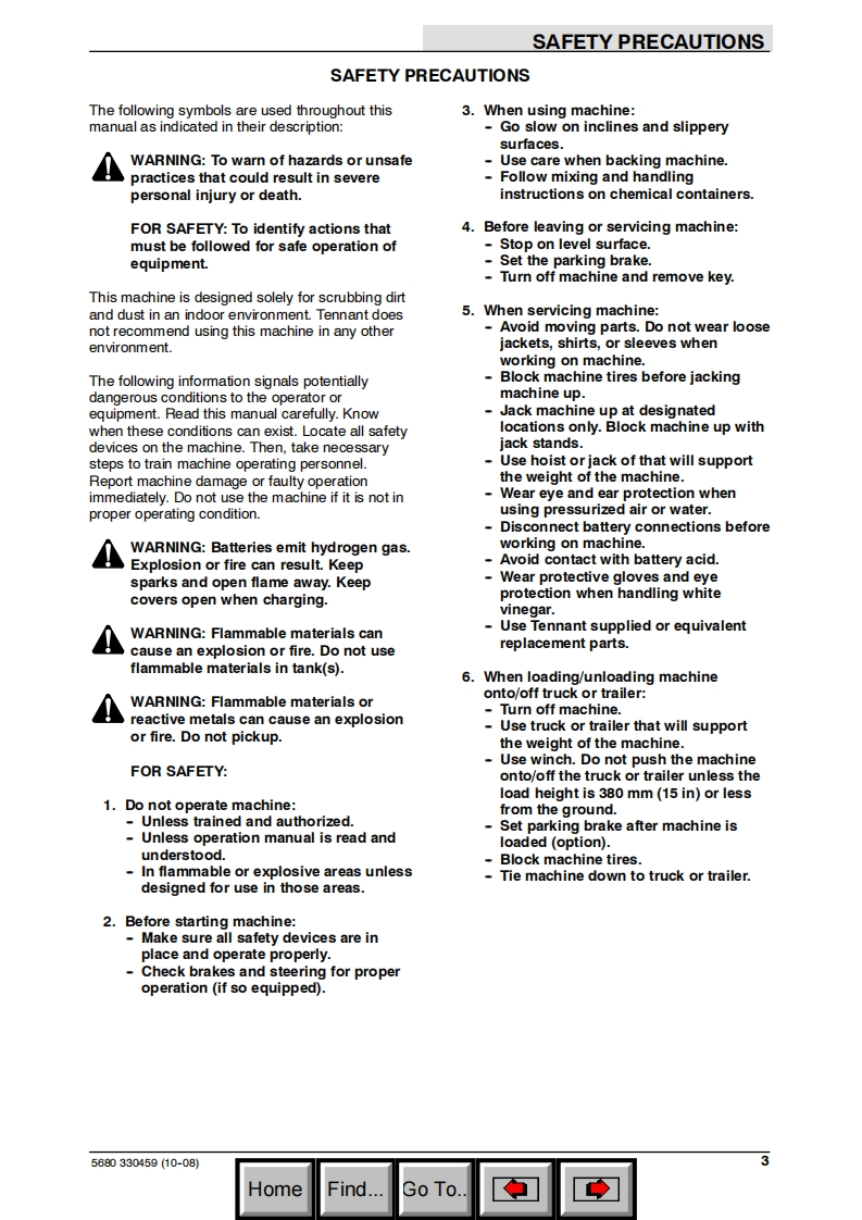 5680_English_Operator_Manual_(CE)找手册网15小时前发布关注私信11.43MB78页0425680_English_Operator_Manual_(CE)此内容为付费资源,请付费后查看¥19¥21黄金会员免费钻石会员免费立即购买您当前未登录!建议登陆后购买,可保存购买订单付费资源 第1页 / 共78页 第2页 / 共78页 第3页 / 共78页 第4页 / 共78页 第5页 / 共78页 试读已结束,还剩73页,您可下载完整版后进行离线阅读 THE ENDTENNANT(坦能) 文本预览 TENNANT5680English ENOperator ManualFaSTecoh20Foam Scrubbing TechnologyELECTRICALLY CONVERTED WATERC€330459Rev.10(10-2008)ww.tennantco.com088HomeFind...Go To 查看更多 收起部分 喜欢就支持一下吧收藏