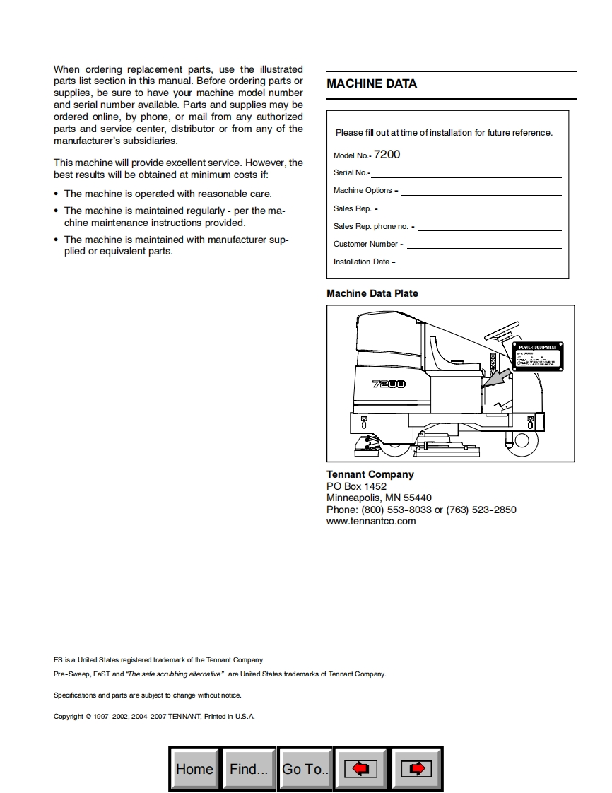 Tennant-7200-维修零部件手册找手册网12小时前发布关注私信7.45MB250页035Tennant-7200-维修零部件手册此内容为付费资源,请付费后查看¥19¥21黄金会员免费钻石会员免费立即购买您当前未登录!建议登陆后购买,可保存购买订单付费资源 第1页 / 共250页 第2页 / 共250页 第3页 / 共250页 第4页 / 共250页 第5页 / 共250页 试读已结束,还剩245页,您可下载完整版后进行离线阅读 THE ENDTENNANT(坦能) 文本预览 TENNANT7200Rider ScrubberParts Manual⑩0EEaSTFoam Scrithhing TechnologyThe Safe Scrubbing Alternative330040North America InternationalRev.12(4-2007)www.tennantco.comHomeFind...Go To. 查看更多 收起部分 喜欢就支持一下吧收藏