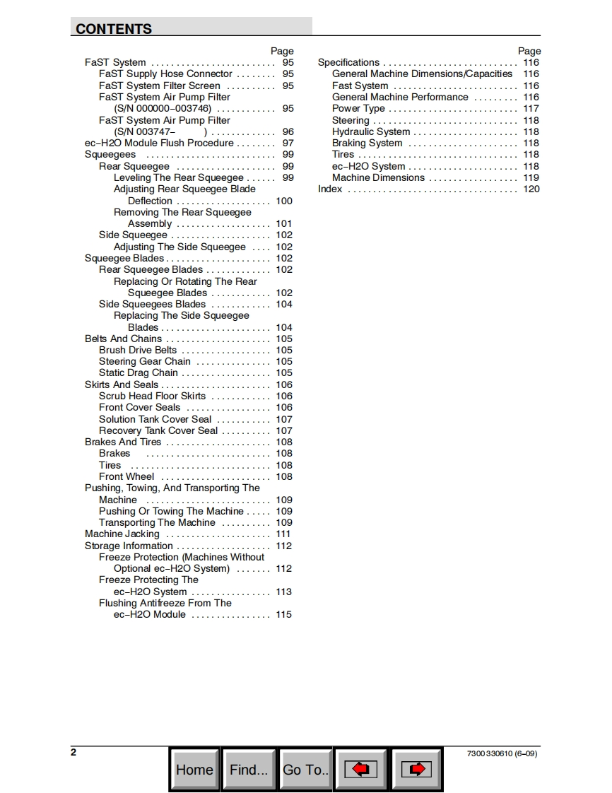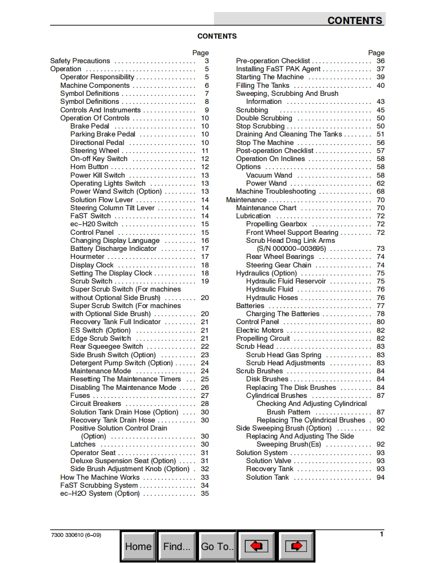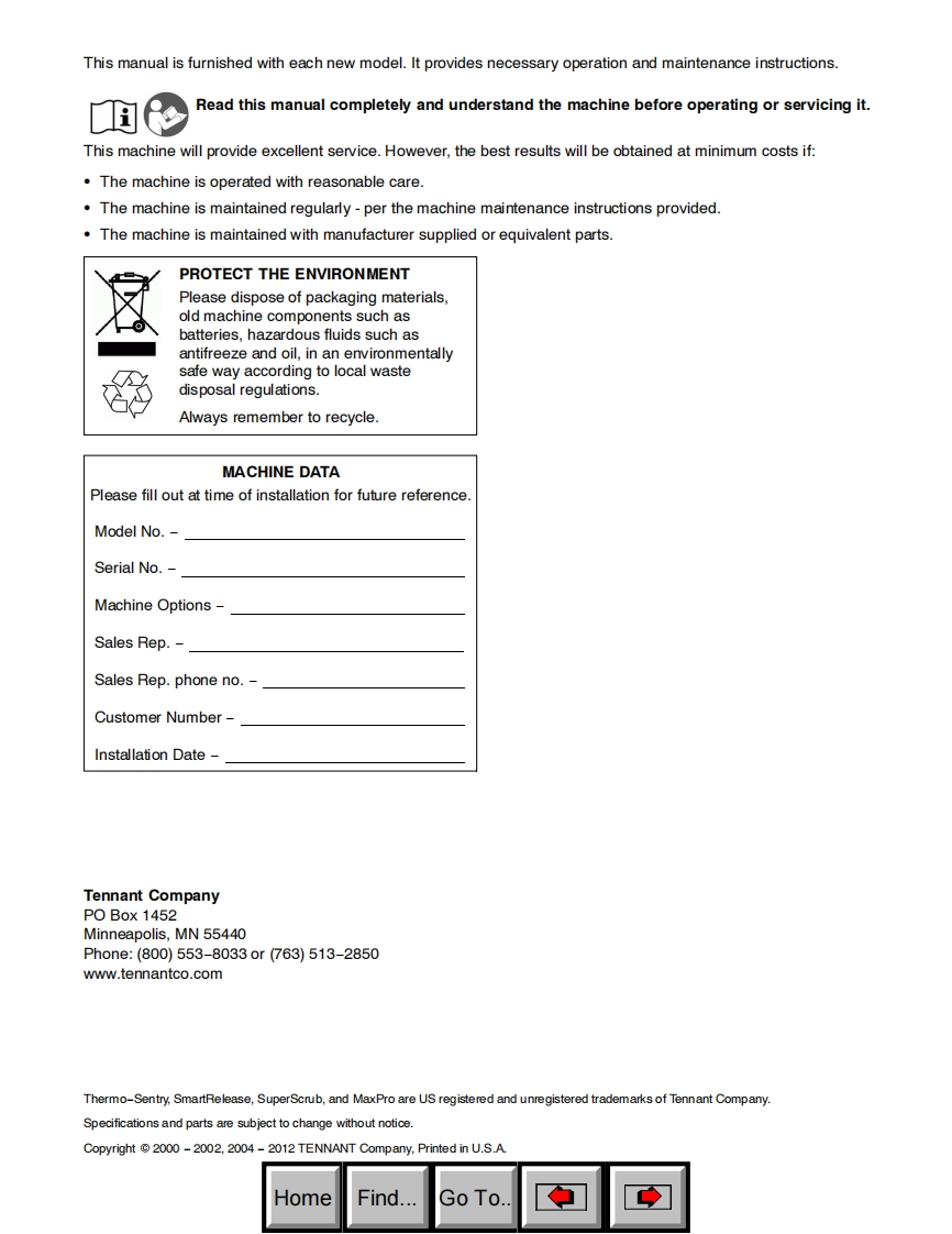 TENNANT7300(Battery)Rider ScrubberOperator ManualFaSTH2Foam Scrubbing TechnologyThe Safe Scrubbing AlternativeAn ORBIO TechnologyES Extended Scrub SystemTennantTrue®PartsIRIS~a Tennant TechnologyNorth America International织330610To view,print or downloadReV.17(7-2012)the latest manual,visit:www.tennantHomeFind...Go To.