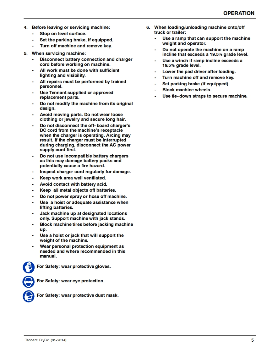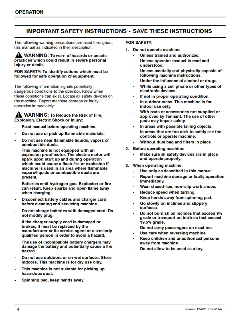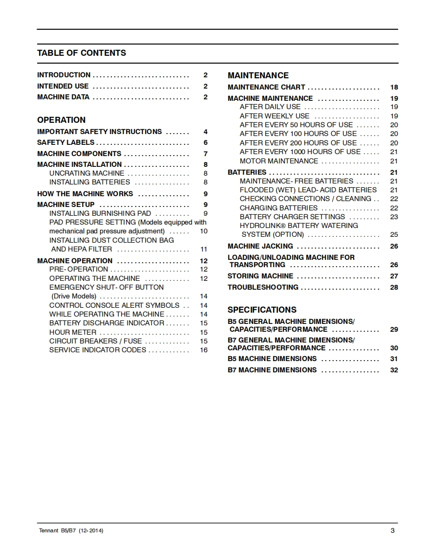 TENNANTB5/B7Walk-Behind Battery BurnisherEnglish ENOperator ManualTennantTrue®PartsNorth America International可回For the latest Parts manuals and otherlanguage Operator manuals,visit:9011480Rev.03(12-2014)www.tennantco.com/manualswww.tennantco.com