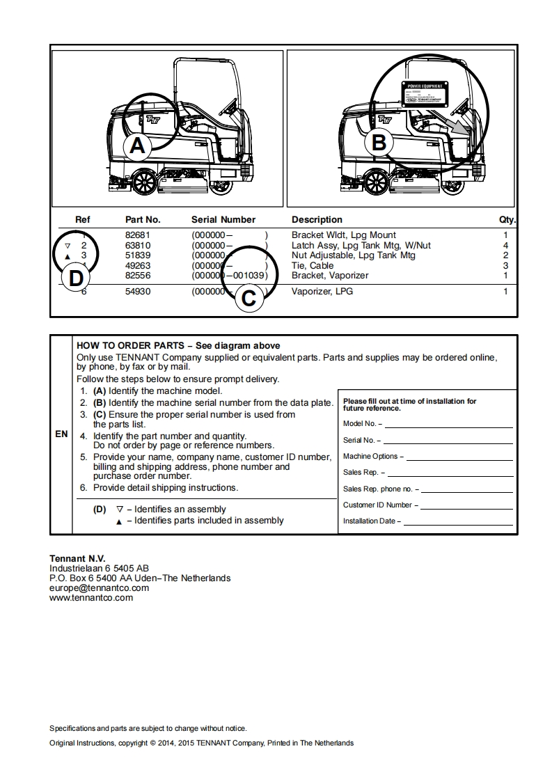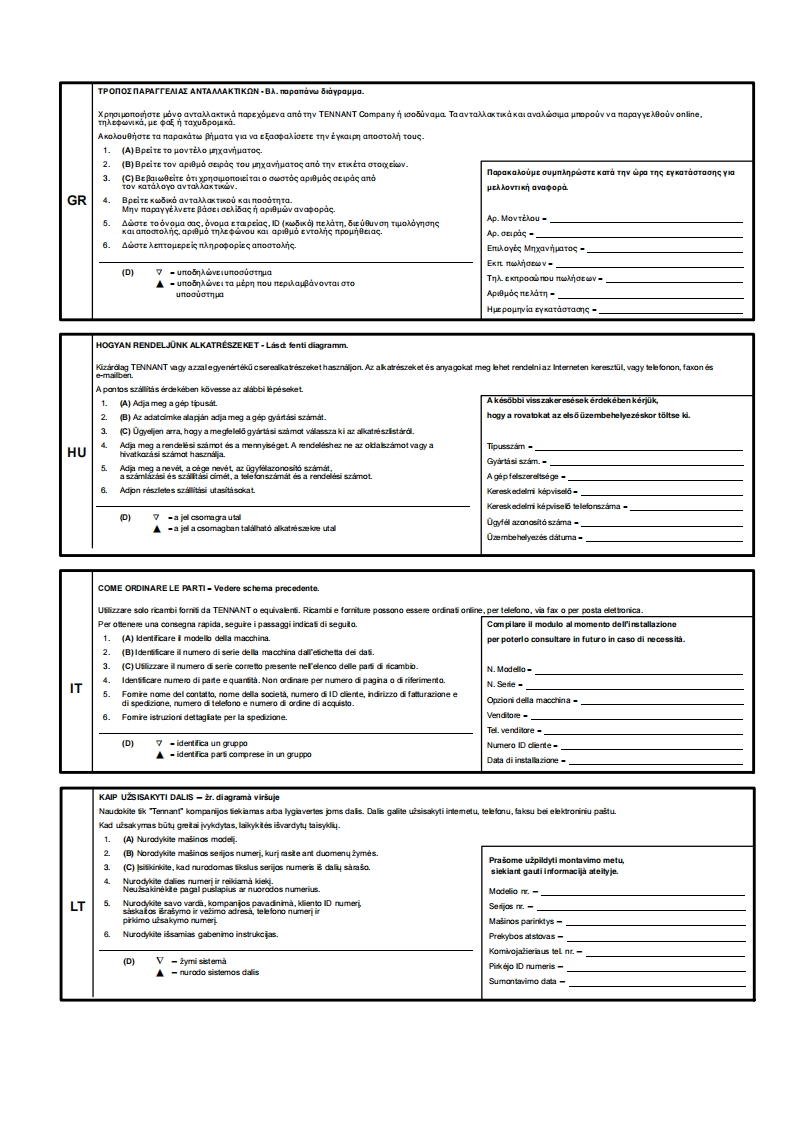 TENNANTT17(Battery)Rider ScrubberParts ManualESR Extended Scrub SystemTennant True PartsH2⊙DIRISTM a Tennant TechnologyAn ORBIO TechnologyC€For latest Parts manual or other9020192Operator language manual,visit:Rev.01(01-2015)ww.tennantco.com/manualsW