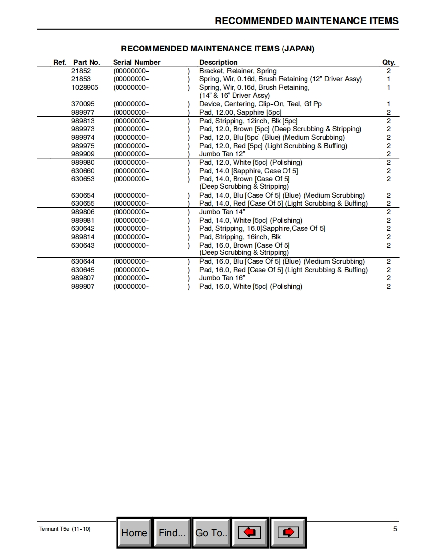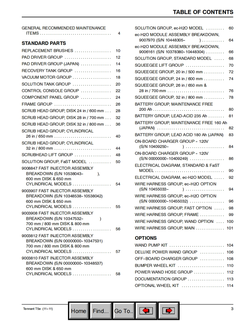 TENNANTT5eAutomatic ScrubberParts Manual0(S/N10000000-20000000)FaSTH2Foam Scrubbing TechnologyThe Safe Scrubbing AlternativeAn ORBIO TechnologyQuick-Train TM ControlsInternational9002335Rev.07(11-2011)www.tennantco.comHomeFind..G0T0.