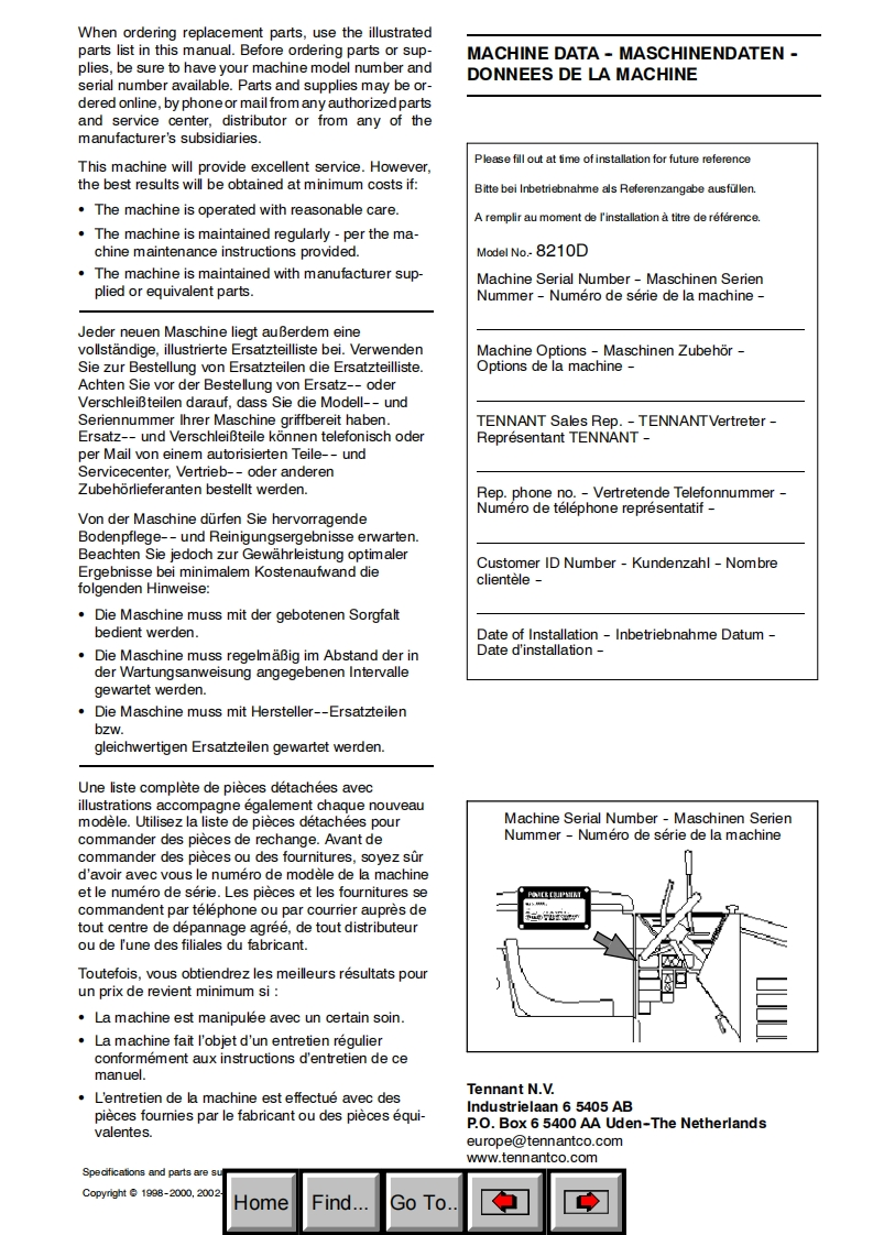 坦能TENNANT-8210D维修与零部件手册含电器原理图找手册网12小时前发布关注私信8.52MB328页027坦能TENNANT-8210D维修与零部件手册含电器原理图此内容为付费资源,请付费后查看¥19¥21黄金会员免费钻石会员免费立即购买您当前未登录!建议登陆后购买,可保存购买订单付费资源 第1页 / 共328页 第2页 / 共328页 第3页 / 共328页 第4页 / 共328页 第5页 / 共328页 试读已结束,还剩323页,您可下载完整版后进行离线阅读 THE ENDTENNANT(坦能) 文本预览 TENNANT8210DParts ManualErsatzteil KatalogManuel des Pieces330216C€Rev.08(5-2006)www.tennantco.comWHomeFind...Go To 查看更多 收起部分 喜欢就支持一下吧收藏