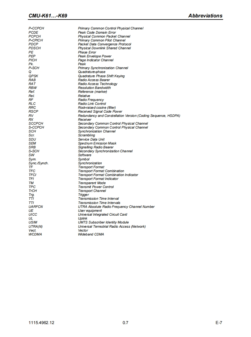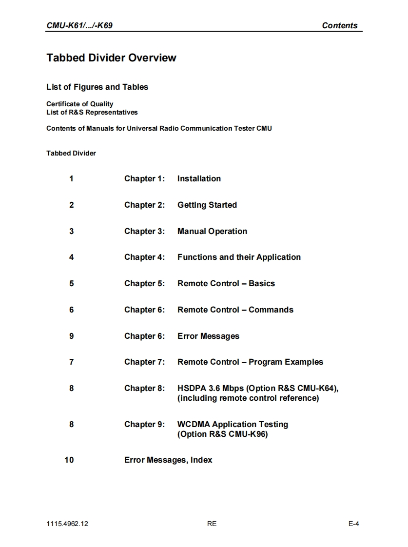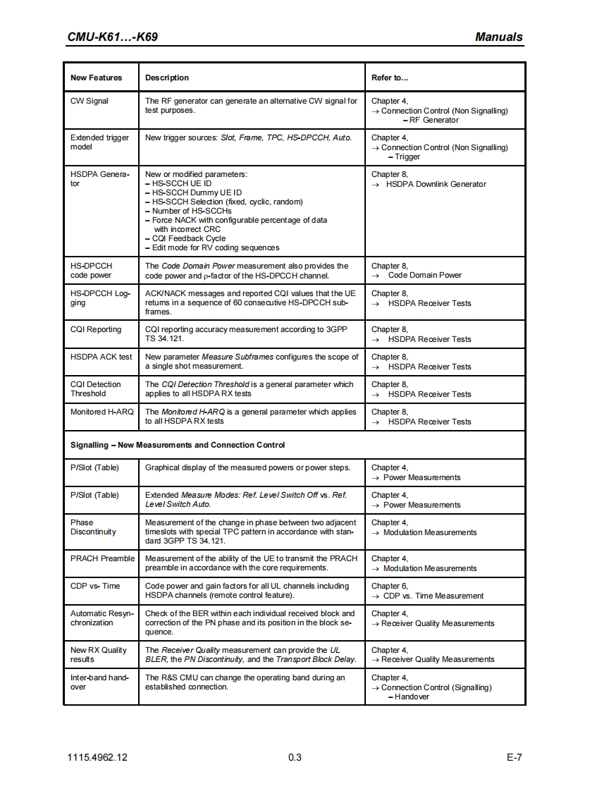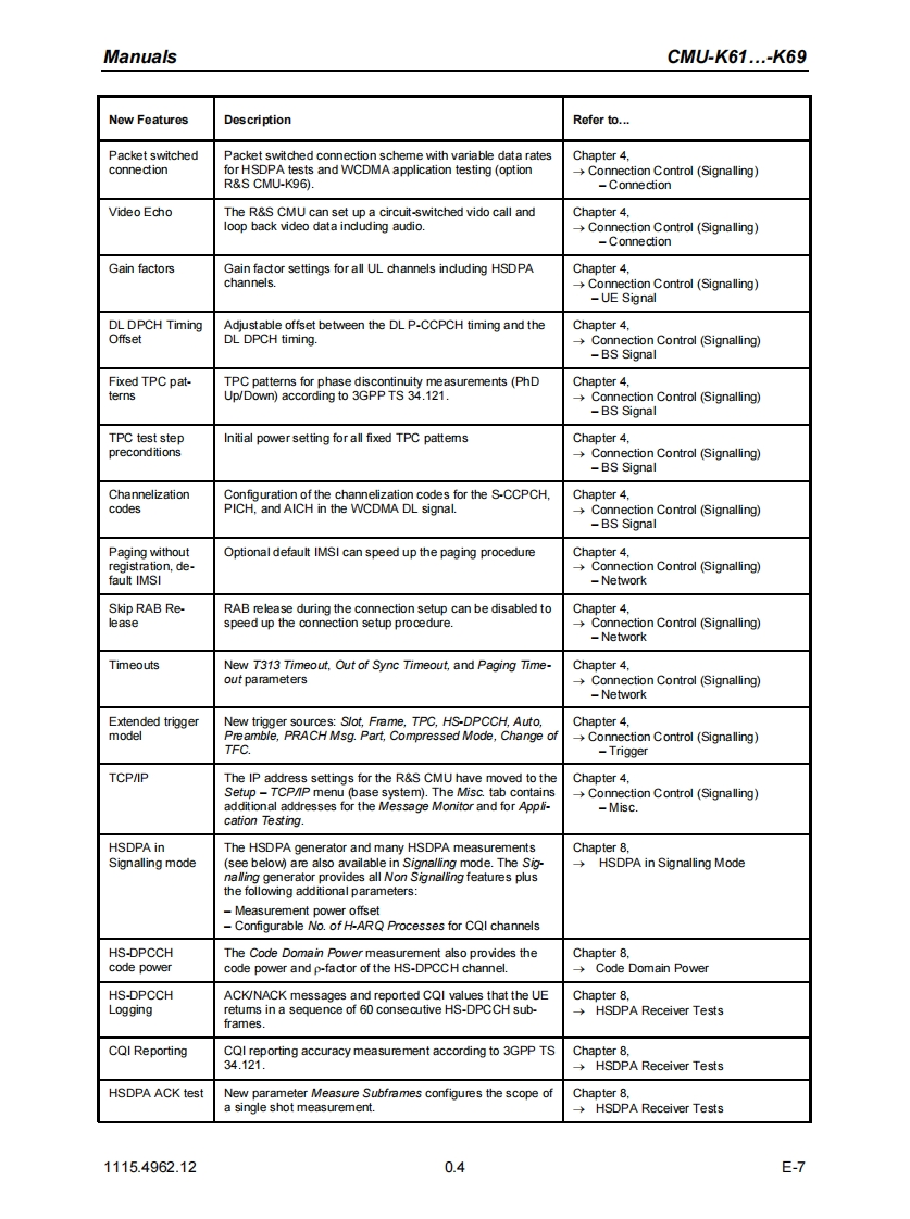 ROHDE &SCHWARZTest and MeasurementDivisionOperating ManualSoftware OptionsWCDMA UE TX Test(3GPP/FDD)R&S®CMU-K651115.4891.02WCDMA(3GPP/FDD,DL)GeneratorR&S CMU-K661115.5100.02WCDMA UE Band Ill /I/II/IV/V/VI SignallingR&S®CMU-K67/-K68/-K69/-K61-K62I-K631150.3000.02/1115.5300.02/1115.5400.021157.3670.02/1157.3770.02/1157.3870.02HSDPA 3.6 MbpsR&S®CMU-K641157.3970.02WCDMA Application TestingR&S®CMU-K961157.4177.02Printed Germany1115.4962.12-08