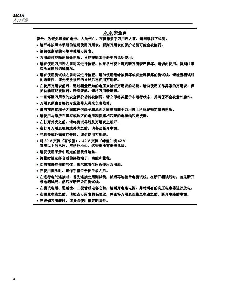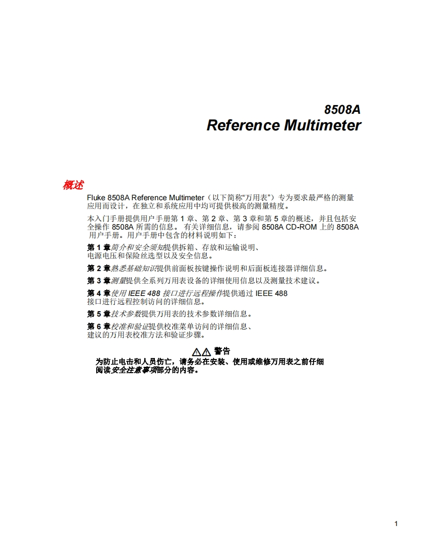 =LUK三Calibration8508AReference Multimeter入门手册September 2004 Rev.2.4/12(Simplified Chinese)2004-2012 Fluke Corporation,All rights reserved.Specifications are subject to change without notice.All product names are trademark of their respective companies.