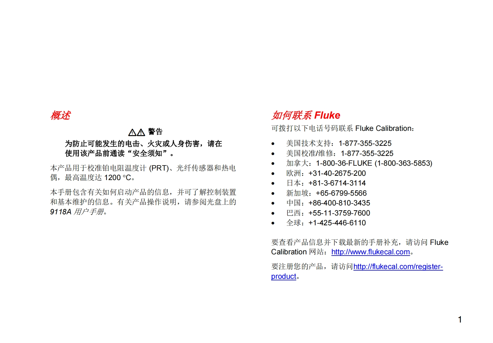 ELUKE。Calibration9118ACalibration Furnace入门手册PN4176584September 2012 Rev.1,3/14(Simplified Chinese)2012 Fluke Corporation.All rights reserved.Specifications are subject to change without notice.All product names are trademarks of their respective companies.