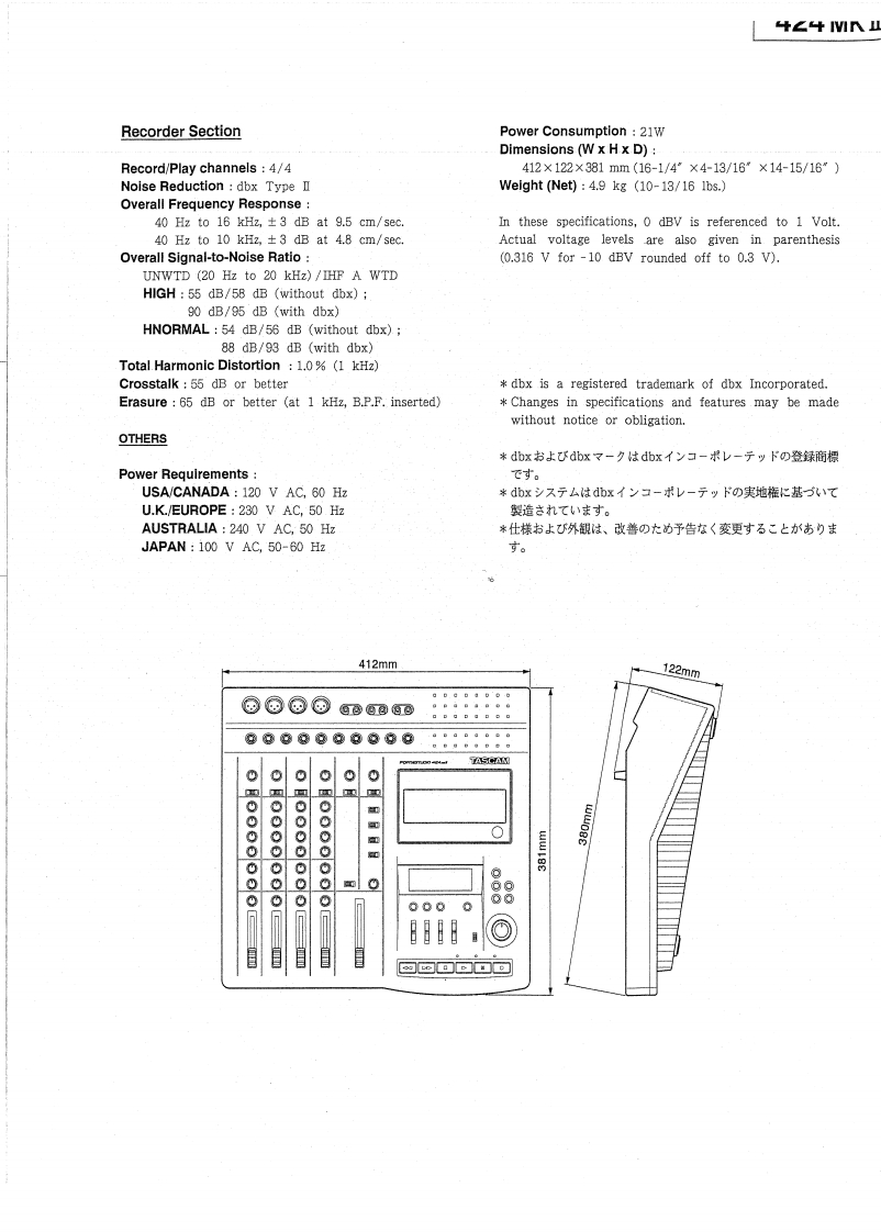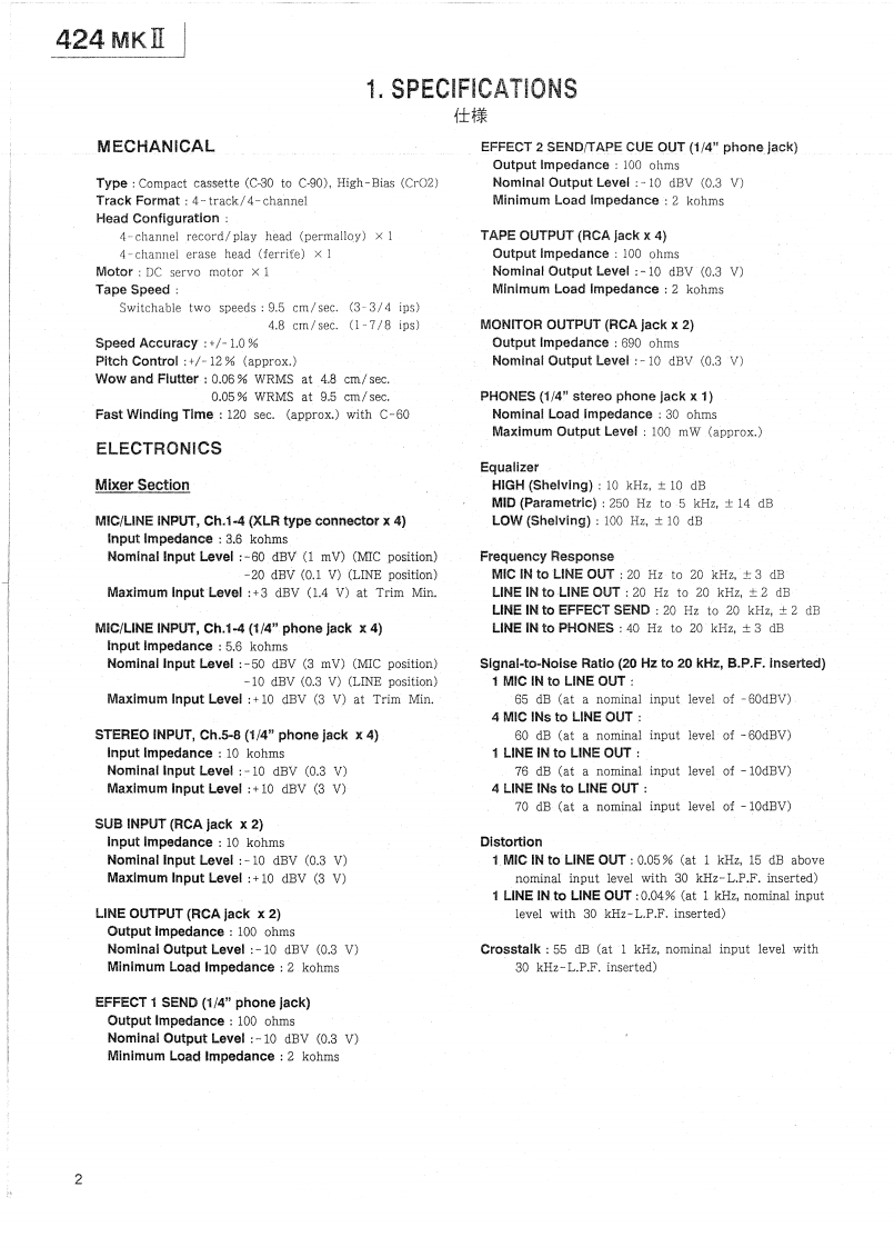 @香四变平TASCAM华空壁生学经忽普汝点88TEAC Professional Division18181818“8"5"百668◎SERVICE MANUAL424MKIPORTASTUDIONOTES注意As regards the resistors and capacitors,refer to the circuit襟準抵抗,☐デ圹一信省路乙声少ま亨。回路区声女基板diagrams and the PCB ass'y drawings contained in this manual.☒苍参照T《杞名(。PC boards shown viewed from parts side.●列刊ソ卜基板☒休都品面水示这九文来寸。*Parts marked with require longer deliver time.●*印0部品休钠期若干小办)圭寸。方扒心功二了承〈忙苍Parts marked with this sign are safety critical components.They must always be replaced with identical components佛心印休安全规格重要部品下寸。交换寸石上老休必式于1了y夕refer to the TEAC Parts List and ensure exact replacement.指定D部品苍使用LT《忙这(。*Parts not shown in the parts lists,or parts,though listed,having●)又卜这九T↓东部品法原則之LT计一七又供拾部品匕LTno parts numbers,are not general "ready-to-supply"parts.取扳℃L丧世人。*Parts of mark can be used only with the version designated.鲁仕向先[US/C]:U.S.A./CANADA [E]:EUROPE [UK]:U.K.[A]AUSTRALIA[US/C]:U.S.A./CANADA [E]:EUROPE [UK]U.K.[A]:AUSTRALIA[J]:JAPAN[J]:JAPANINSTRUCTIONS FOR SERVICE PERSONNELBEFORE RETURNING APPLIANCE TO THE CUSTOMER,MAKE LEAKAGE-CURRENTOR RESISTANCE MEASUREMENTS TO DETERMINE THAT EXPOSED PARTS AREACCEPTABLY INSULATED FROM THE SUPPLY CIRCUIT.Effective:May,1996D002547005