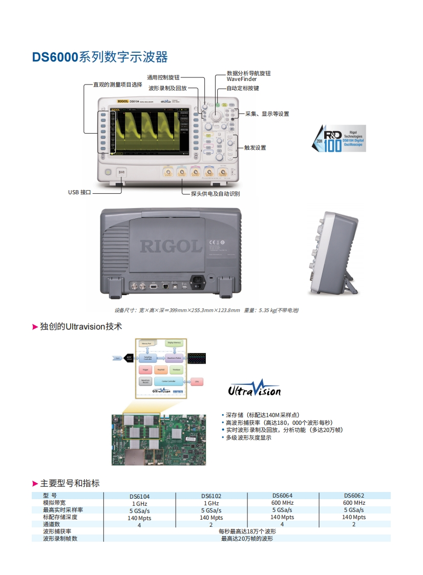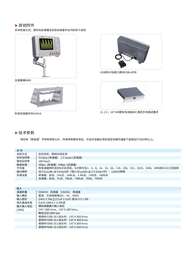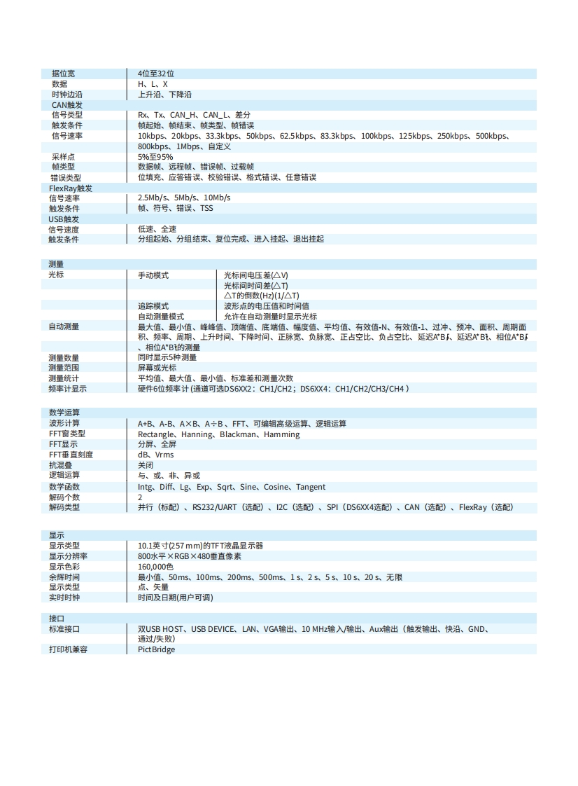 DS6000数据手册找手册网16小时前发布关注私信5MB10页035DS6000数据手册此内容为付费资源,请付费后查看¥19¥21黄金会员免费钻石会员免费立即购买您当前未登录!建议登陆后购买,可保存购买订单付费资源 第1页 / 共10页 第2页 / 共10页 第3页 / 共10页 第4页 / 共10页 第5页 / 共10页 第6页 / 共10页 第7页 / 共10页 第8页 / 共10页 第9页 / 共10页 第10页 / 共10页 已完成全部阅读,共10页 THE ENDRIGOL 文本预览 RIGOLRIGOL DS6104 0co06mRIGOLDS6000系列数字示波器99·1GHz,600MHz·实时采样率高达5GSa/s。通道数2或4个·存储深度深达140Mpts采样点标配)·波形捕获率高达每秒180.000个波形·标配多达20万帧的硬件实时波形不间断录制功能和波形分析功能·独创的JltraVision技术。标配支持串行总线的触发,选配支持解码功能·丰富的接口:USB,LAN(支持XI-C),VGA,AUX,GPIB(选项。内置1GBytes的Flash Memory·带有锂电池选件·10.1英寸WWGA(800X480),多级波形灰度显示DS6000系列是针对最广泛的数字示波器市场的通用设计,调试,测试的需求而设计的高性能数字示波器。普源精电 查看更多 收起部分 喜欢就支持一下吧收藏