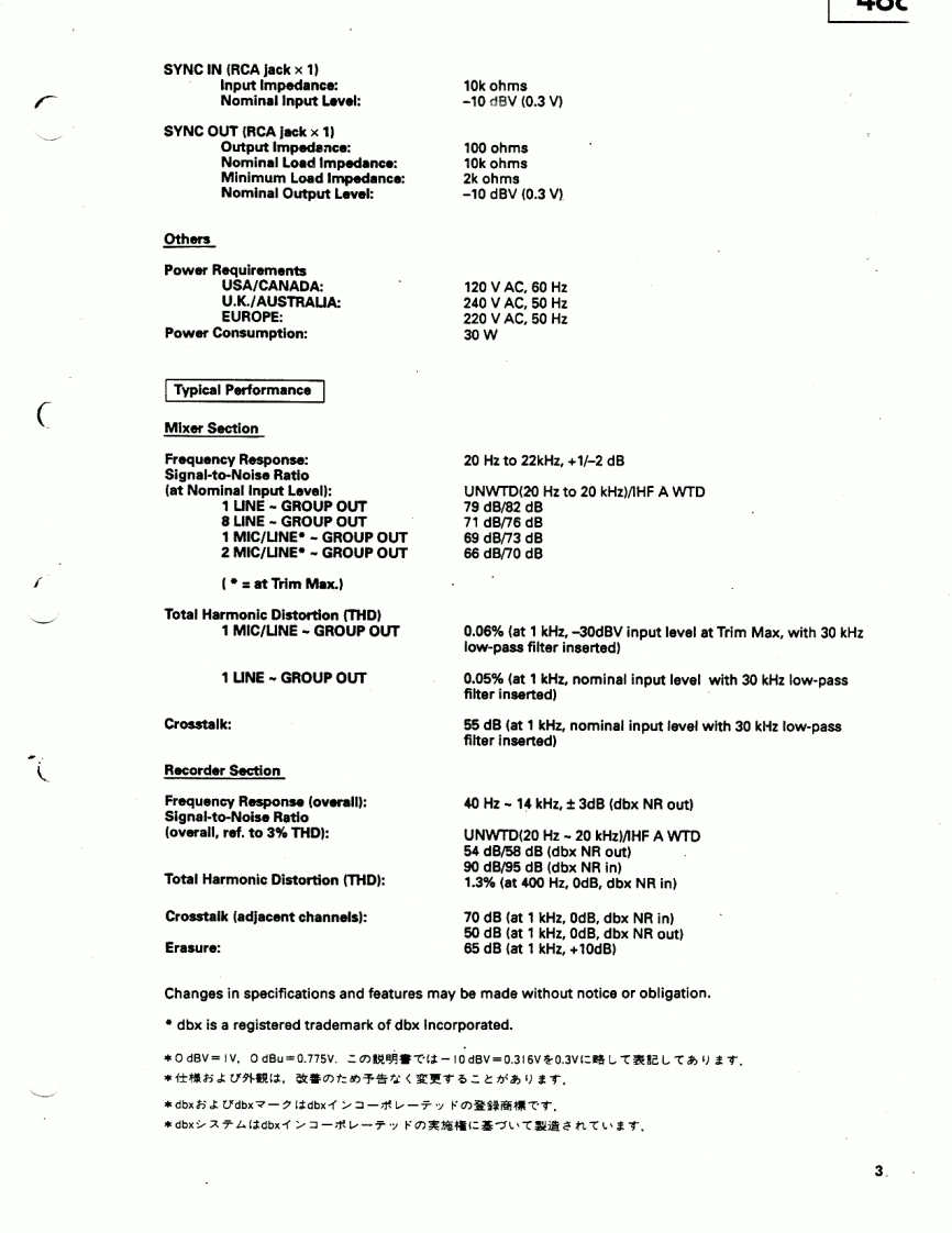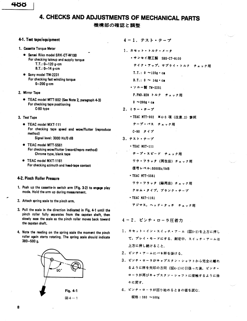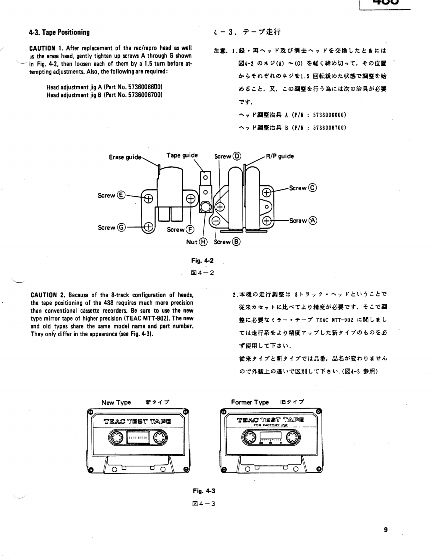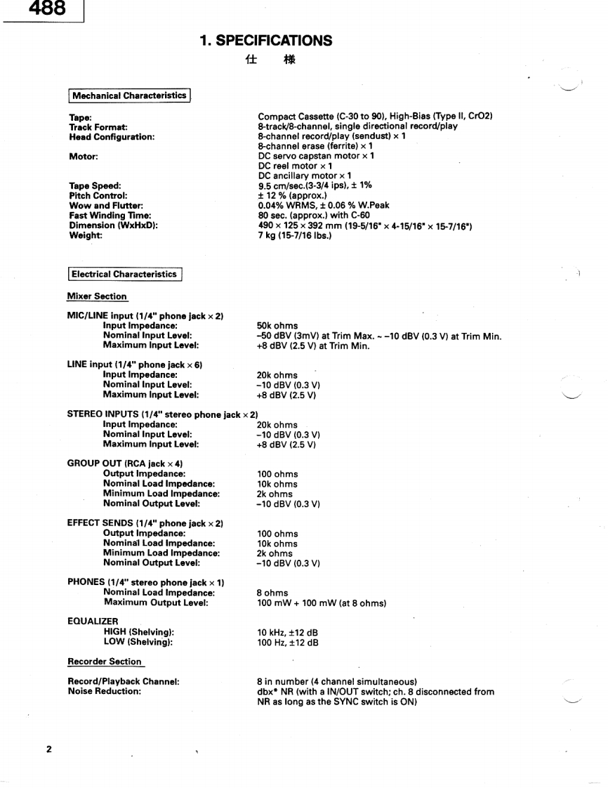 TASCAMTEAC Professional Division5oo00ooo日日运色SERVICE MANUAL488尸ORTASTUDI▣NOTES注意As regards the resistors and capacitors,refer to the circuit镖準の抵抗:口>子竹一(法省略LT扬)寸。回路回diagrams and the PCB ass'y drawings contained in this manual.及U基板☒专参照LT〈拦吉*Parts marked with require longer delivery time.1,ブ)一卜基板☒林部品面示志机TL丰寸。Resistor values are in ohms (k =1,000 ohms,M -1,000,0002。*印の部品休纳期力若干力力幸寸。南与力心动二了承ohms).*All capacitor values are in microfarads(p=picofarads).《拦含儿。*AParts marked with this sign are safety critical components.3,△印休安全想格重要部品下寸。交换寸石上孝住必寸子They must always be replaced with identical components-refer了”夕指定)部品专使用Lt下吉。to the TEAC Parts List and ensure exact replacement.4.上ペ儿休0dB=IV卷基準仁LTL志寸0dB is referenced to 1V in this manual unless otherwise specifi-5.>宁>竹单位(tuF.p=pF(IuF=1,000.000pF)ed.5,製品力改善意九T儿、马上的二、製品上回路☒力一部異一PC boards shown viewed from parts side.℃儿高場合劫)丰寸。*Parts not shown in the parts lists,or parts,though listed,havingno parts numbers,are not general"ready-to-supply"parts.7,又卜这九T(标(部品体原则上LT竹一上又供耠部品上LT取极ヮTL、走世人INSTRUCTIONS FOR SERVICE PERSONNELBEFORE RETURNING APPLICANCE TO THE CUSTOMER,MAKE LEAKAGE-CURRENT OR RESISTANCE MEASUREMENTS TO DETERMINE THAT EXPOSEDPARTS ARE ACCEPTABLY INSULATED FROM THE SUPPLY CIRCUIT.5704051705