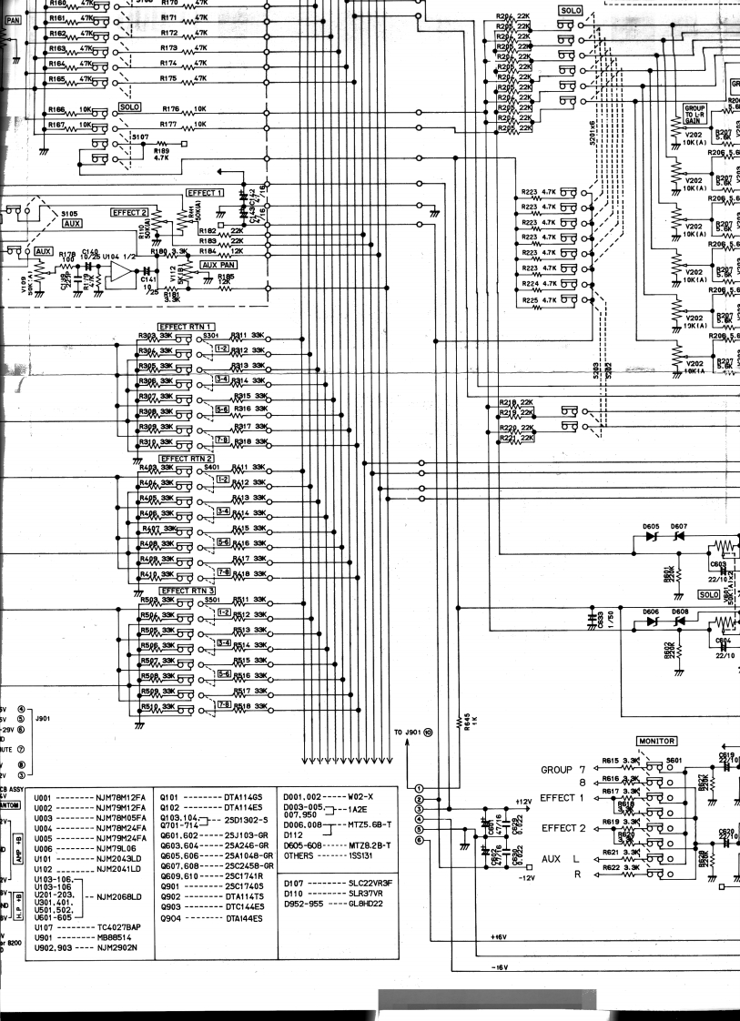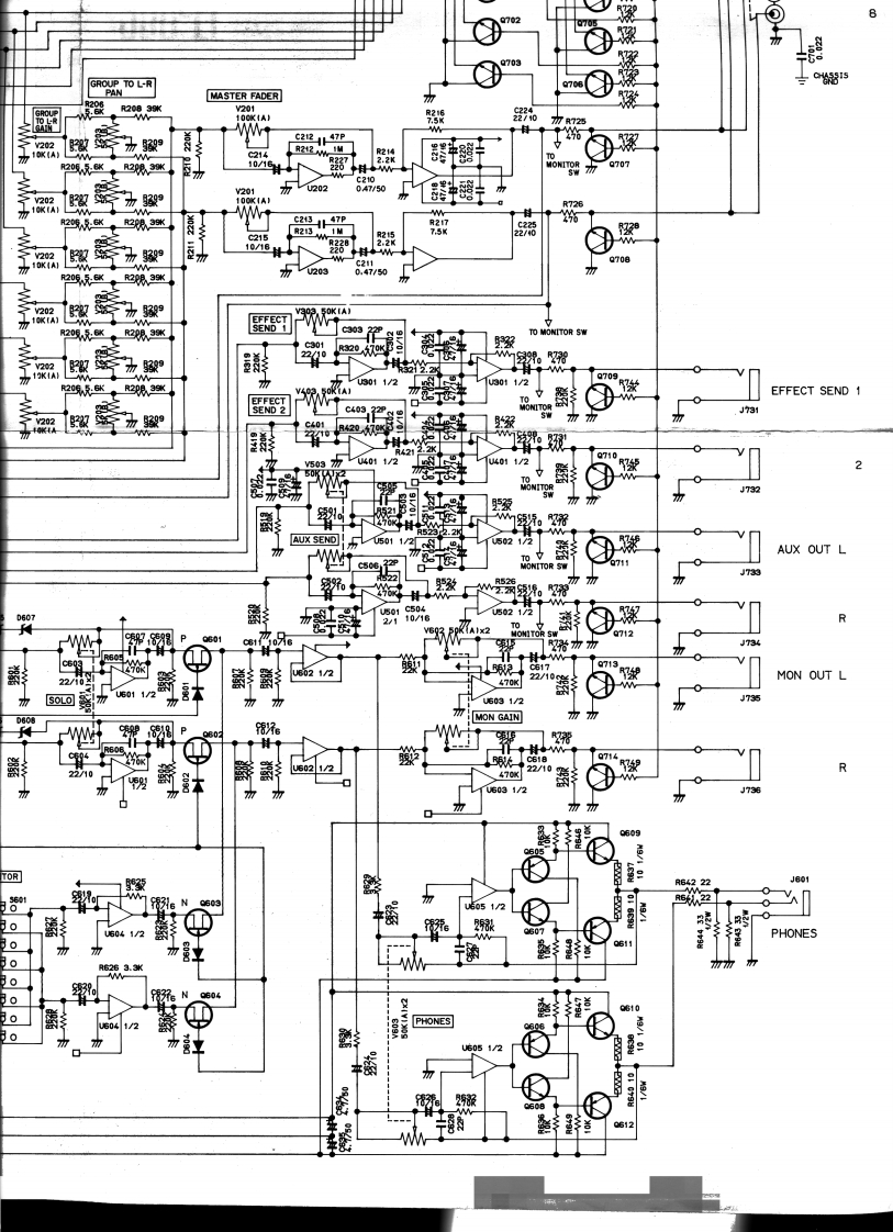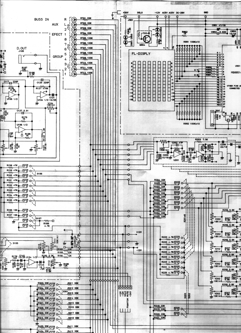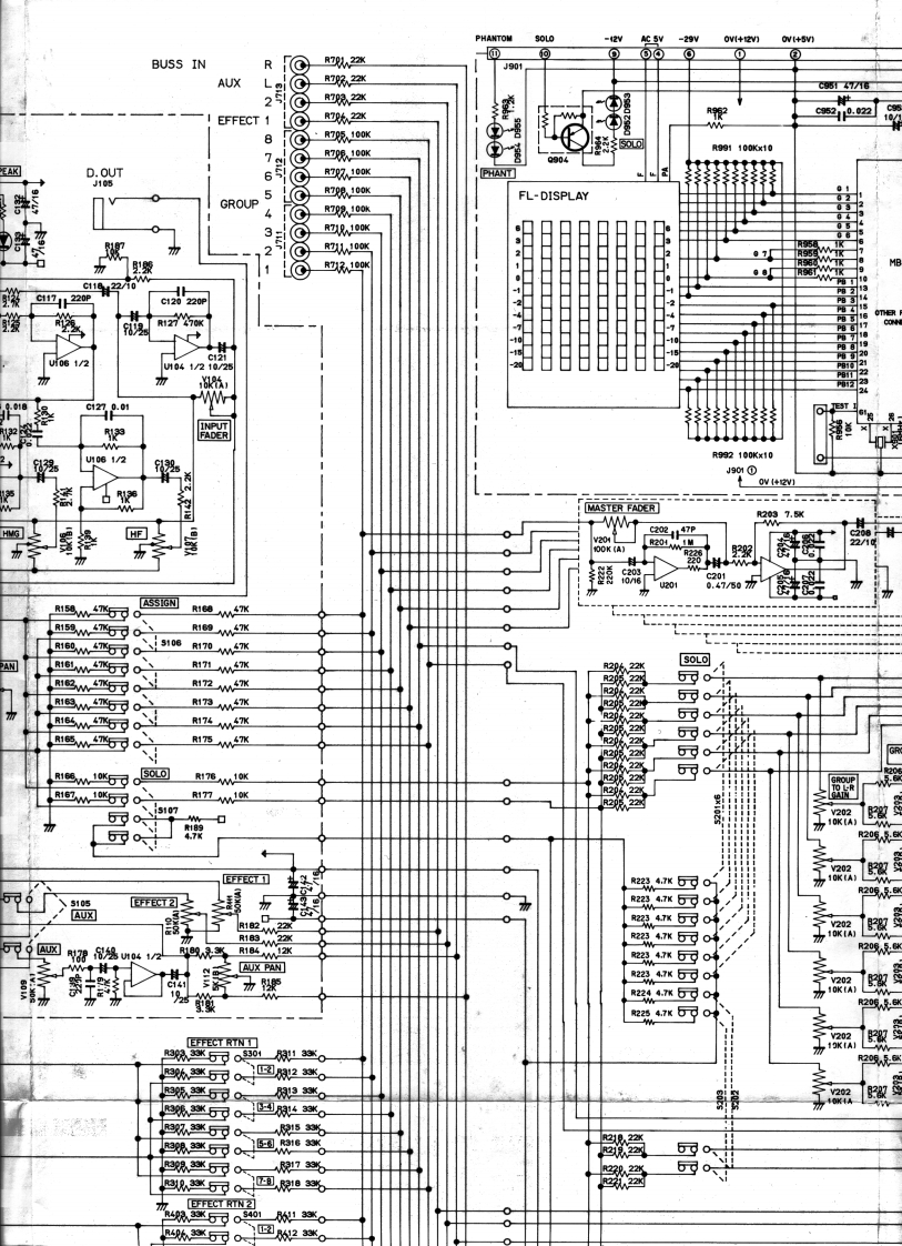 SCHEMATIC DIAGRAMMODEL 812ACCESS SEND RCVPEA☒J103中C112.220PR116116220r装22355101U1031/2/2TRIM]新uo31/210220KG1x210320KC1xR132食1222x1/2512鉴INPUTJ102$R15927PANR1610器R18船J101②①CORTROLLER2°TAPEEFFECT 26可0PHANTOMEFFECT RETURN/500224vEFFECT RTN 1 GAINJ70时PANEFFECT RTN 2 GAIN
