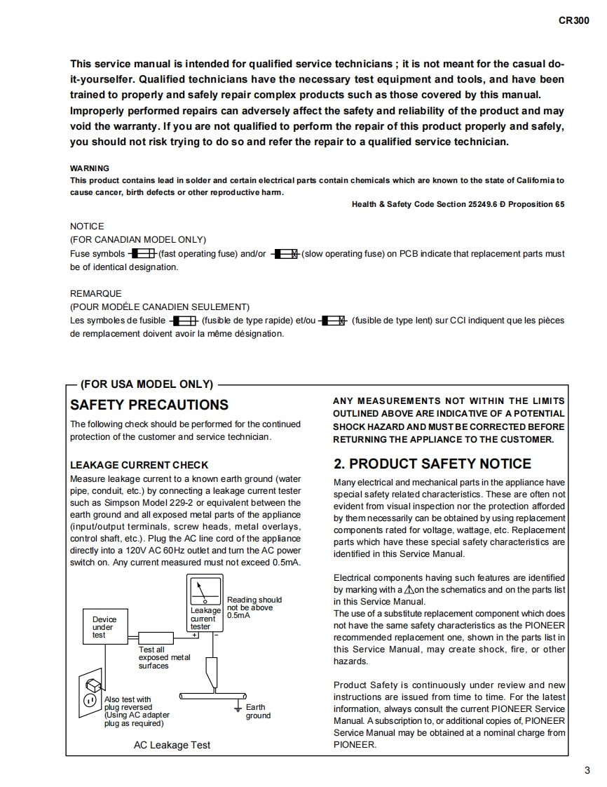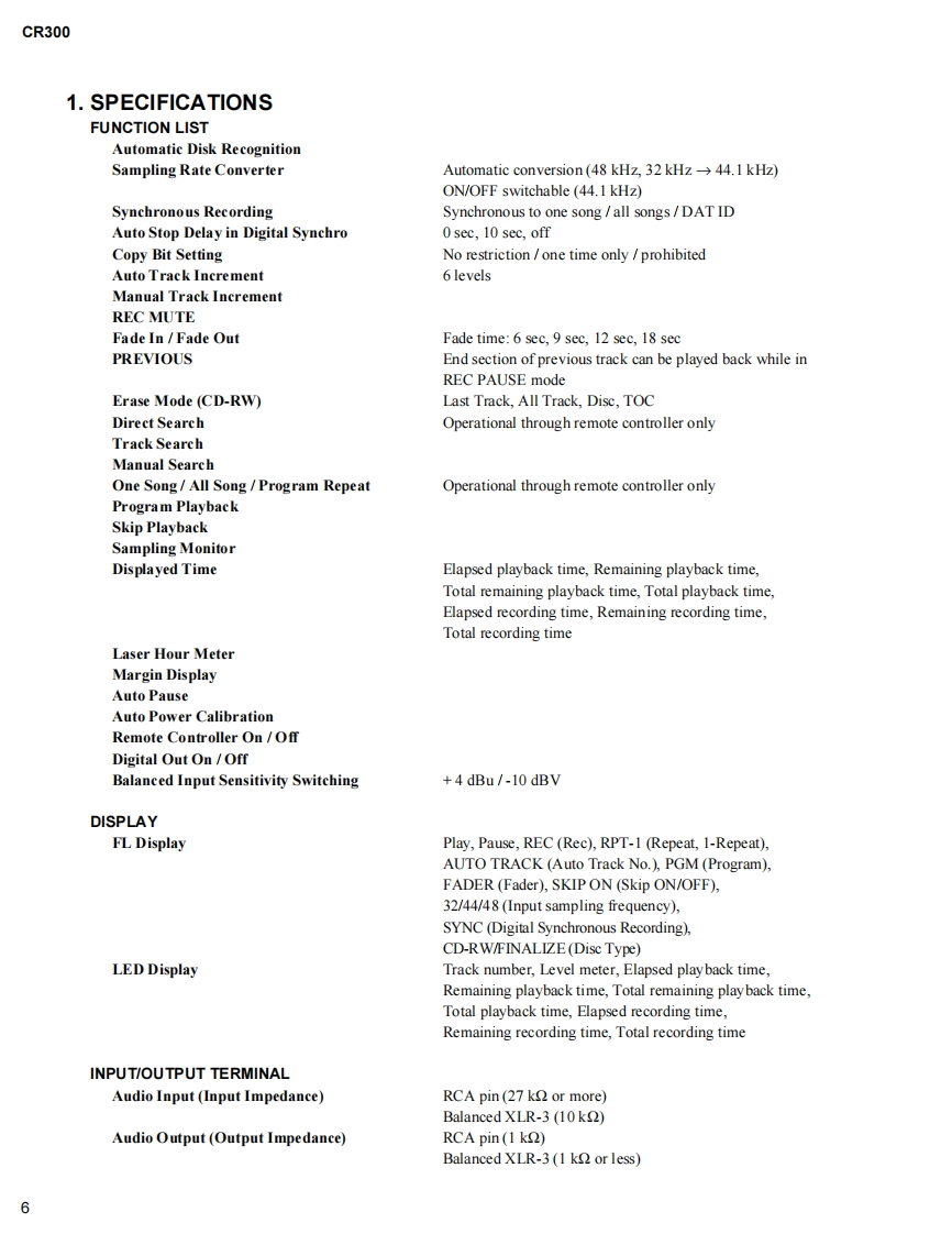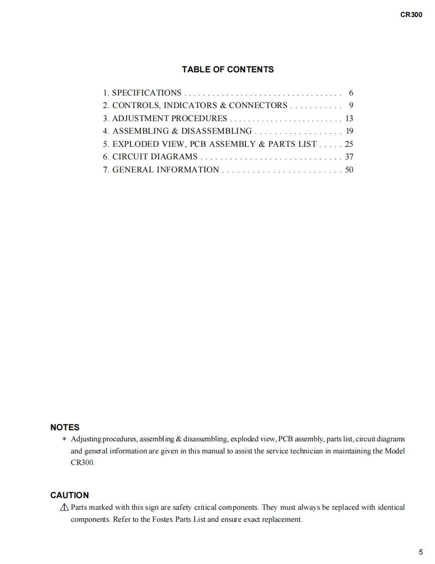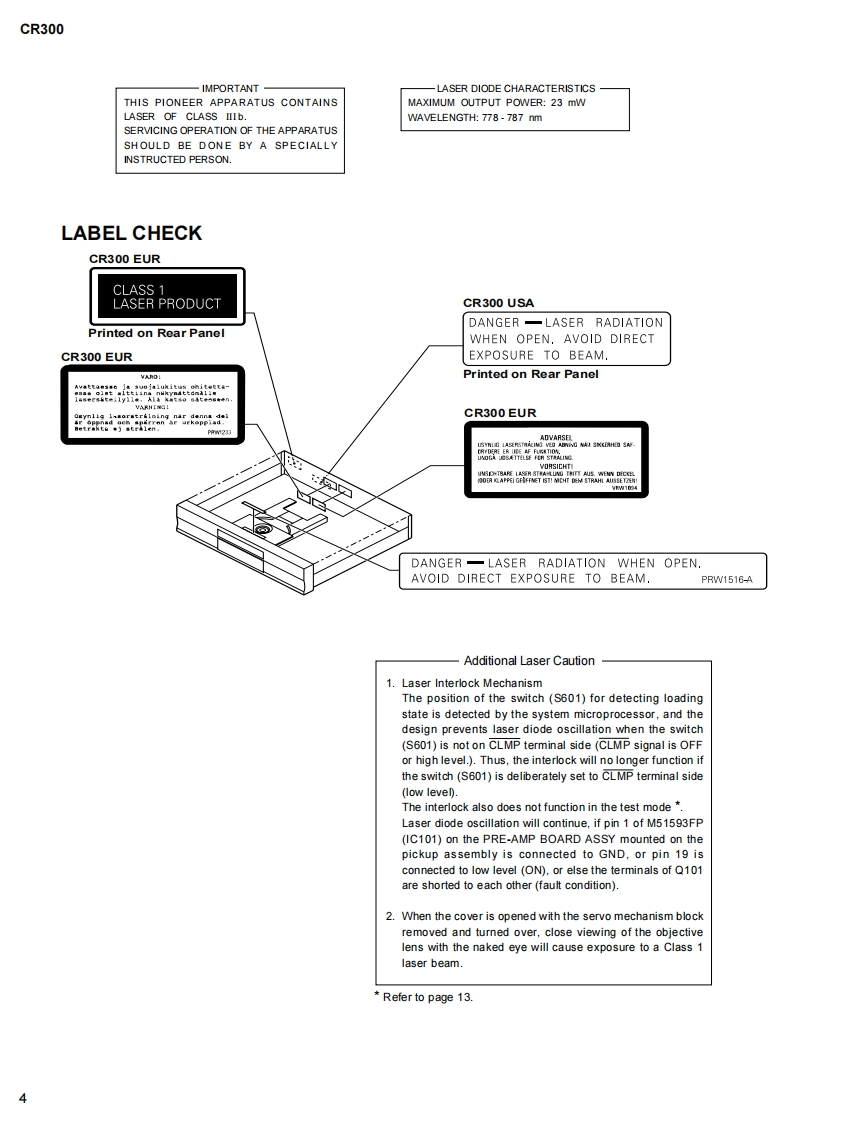 Service ManualModelCR300COMPACT DISC RECORDER-FOR U.S.MODELS-NECESSARY INFORMATION FOR DHHSRULES MARKED ON THE REAR BASE AND ONTHE TOP OF CD MECHANISM AS BELOW.DANGER LASER RADIATION WHEN OPEN.AVOID DIRECT EXPOSURE TO BEAM.FoStex