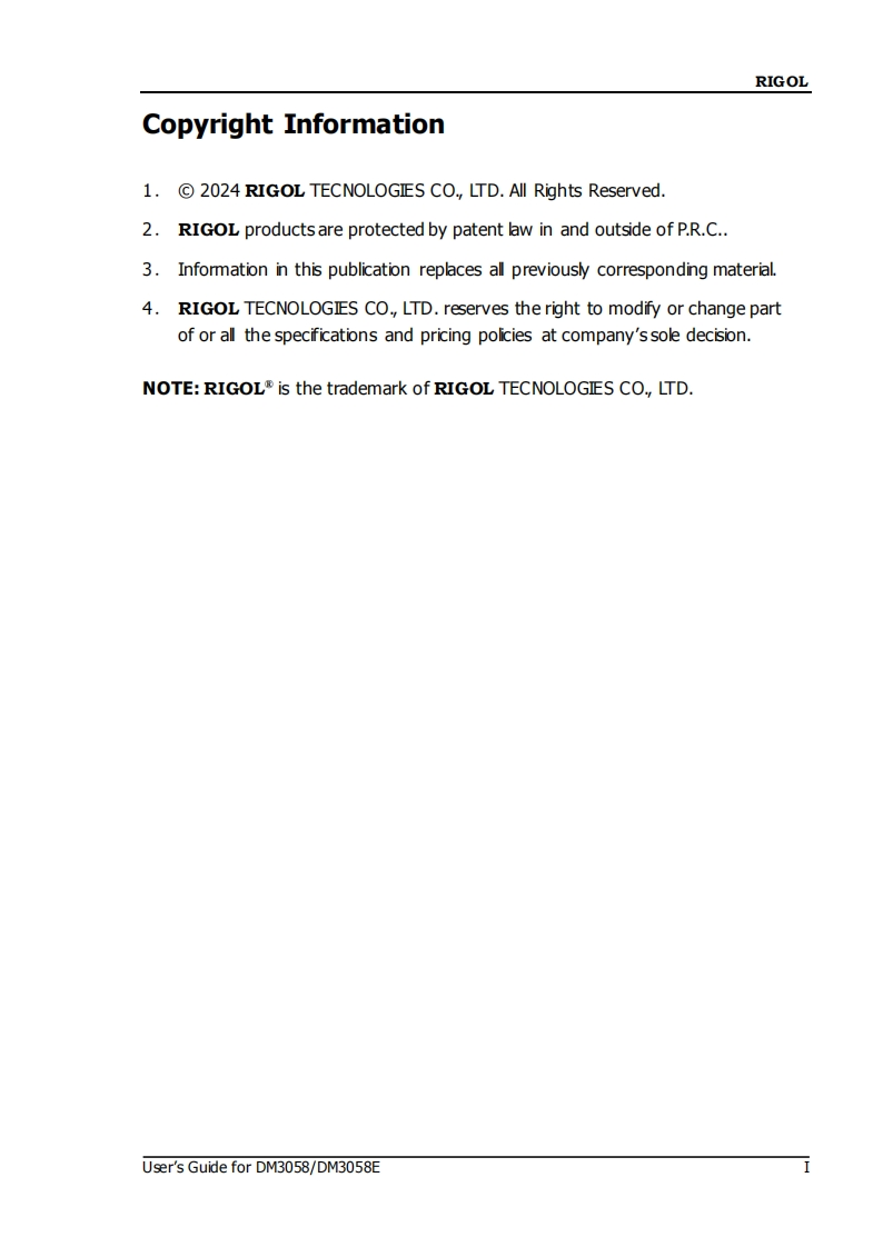 RIGOL-DM3058_操作说明书手册_EN找手册网14小时前发布关注私信5.23MB138页043RIGOL-DM3058_操作说明书手册_EN此内容为付费资源,请付费后查看¥19¥21黄金会员免费钻石会员免费立即购买您当前未登录!建议登陆后购买,可保存购买订单付费资源 第1页 / 共138页 第2页 / 共138页 第3页 / 共138页 第4页 / 共138页 第5页 / 共138页 第6页 / 共138页 第7页 / 共138页 第8页 / 共138页 第9页 / 共138页 第10页 / 共138页 试读已结束,还剩128页,您可下载完整版后进行离线阅读 THE ENDRIGOL 文本预览 User's GuideRIGOLPublication Number:UGC03122-1110Jan.2024DM3058/DM3058E Digital Multimeter2024 RIGOL TECNOLOGIES CO.,LTD.All Rights Reserved 查看更多 收起部分 喜欢就支持一下吧收藏