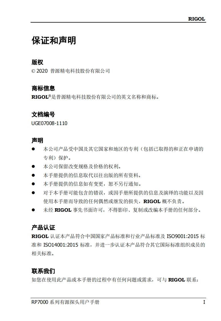 RIGOL-RP7080_RP7150_操作说明书手册CNEN找手册网9小时前发布关注私信0.95MB70页037RIGOL-RP7080_RP7150_操作说明书手册CNEN此内容为付费资源,请付费后查看¥19¥21黄金会员免费钻石会员免费立即购买您当前未登录!建议登陆后购买,可保存购买订单付费资源 第1页 / 共70页 第2页 / 共70页 第3页 / 共70页 第4页 / 共70页 第5页 / 共70页 第6页 / 共70页 第7页 / 共70页 第8页 / 共70页 第9页 / 共70页 第10页 / 共70页 试读已结束,还剩60页,您可下载完整版后进行离线阅读 THE ENDRIGOL 文本预览 RIGOL用户手册RP7000系列有源探头2020年5月RIGOL TECHNOLOGIES CO.,LTD 查看更多 收起部分 喜欢就支持一下吧收藏