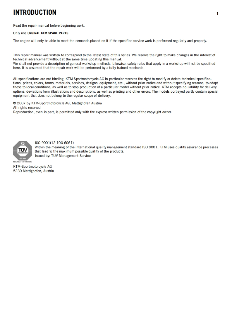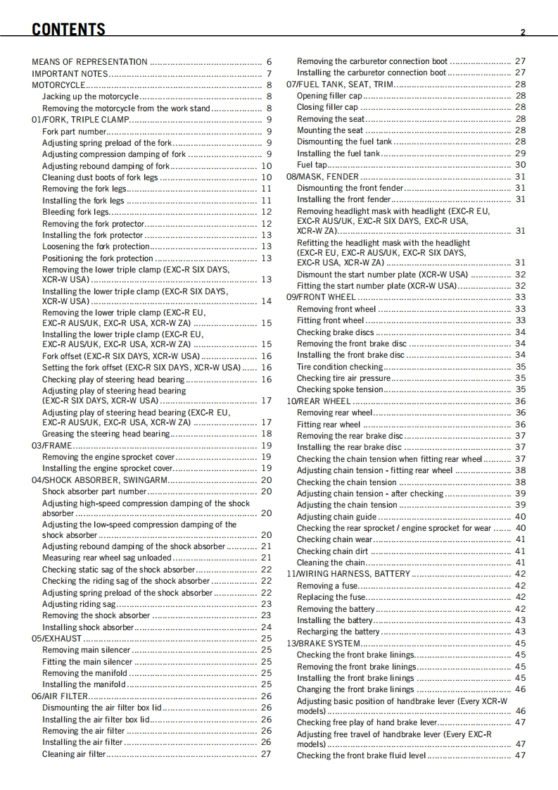Ktm_530exc_XC4_Repair_Manual维修手册_English找手册网8小时前发布关注私信10.79MB191页034Ktm_530exc_XC4_Repair_Manual维修手册_English此内容为付费资源,请付费后查看¥19¥21黄金会员免费钻石会员免费立即购买您当前未登录!建议登陆后购买,可保存购买订单付费资源 第1页 / 共191页 第2页 / 共191页 第3页 / 共191页 第4页 / 共191页 第5页 / 共191页 第6页 / 共191页 第7页 / 共191页 第8页 / 共191页 第9页 / 共191页 第10页 / 共191页 试读已结束,还剩181页,您可下载完整版后进行离线阅读 THE ENDKtm 文本预览 REPAIR MANUAL 2008450 EXC-R EU450 EXC-R AUS/UK450 EXC-R SIX DAYS450 EXC-R USA450 XCR-W USA450 XCR-W ZA530 EXC-R EU530 EXC-R AUS/UK530 EXC-R SIX DAYS530 EXC-R USA530 XCR-W USA530 XCR-W ZAART.N0.3206054enKK 查看更多 收起部分 喜欢就支持一下吧收藏