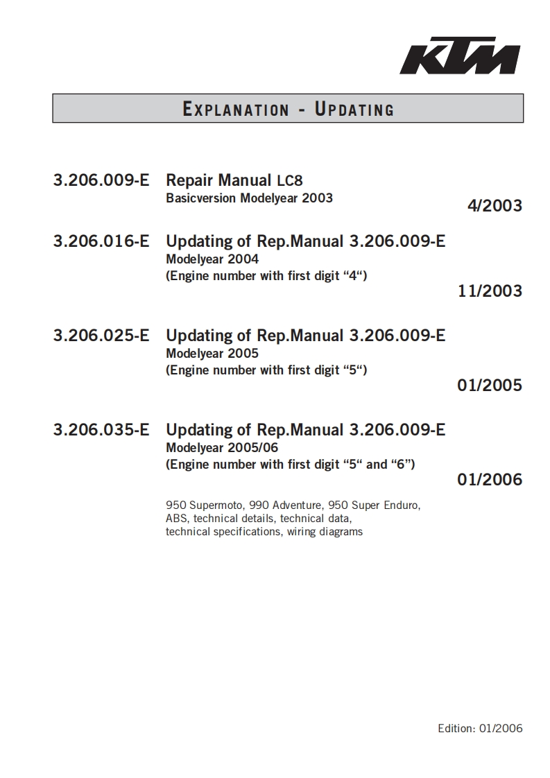 KTM摩托车950-990-2003_2006维修手册找手册网12小时前发布关注私信24.40MB394页022KTM摩托车950-990-2003_2006维修手册此内容为付费资源,请付费后查看¥19¥21黄金会员免费钻石会员免费立即购买您当前未登录!建议登陆后购买,可保存购买订单付费资源 第1页 / 共394页 第2页 / 共394页 第3页 / 共394页 第4页 / 共394页 第5页 / 共394页 第6页 / 共394页 第7页 / 共394页 第8页 / 共394页 第9页 / 共394页 第10页 / 共394页 试读已结束,还剩384页,您可下载完整版后进行离线阅读 THE ENDKtm 文本预览 REPAIRMANUAL2003-2006950/990 ADVENTURE990 SUPER DUKE950 SUPERMOTO950 SUPER ENDUROREPARATURANLEITUNGMANUALE DI RIPARAZIONEMANUEL DE REPARATIONMANUAL DE REPARACIONKK 查看更多 收起部分 喜欢就支持一下吧收藏