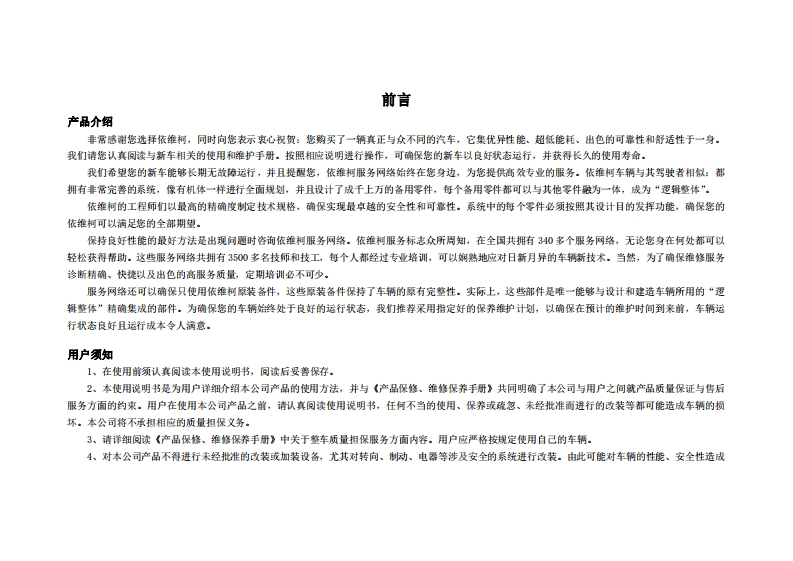 欧胜使用说明书_V2.4_20231121找手册网8小时前发布关注私信9.60MB245页025欧胜使用说明书_V2.4_20231121此内容为付费资源,请付费后查看¥29¥31黄金会员免费钻石会员免费立即购买您当前未登录!建议登陆后购买,可保存购买订单付费资源 第1页 / 共245页 第2页 / 共245页 第3页 / 共245页 第4页 / 共245页 第5页 / 共245页 第6页 / 共245页 第7页 / 共245页 第8页 / 共245页 第9页 / 共245页 第10页 / 共245页 试读已结束,还剩235页,您可下载完整版后进行离线阅读 THE ENDIveco 文本预览 南京依维柯欧胜汽车使用说明书(V2.4)南京依维柯汽车有限公司2023年11月 查看更多 收起部分 喜欢就支持一下吧收藏