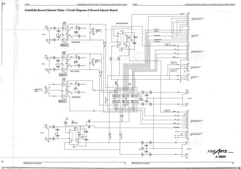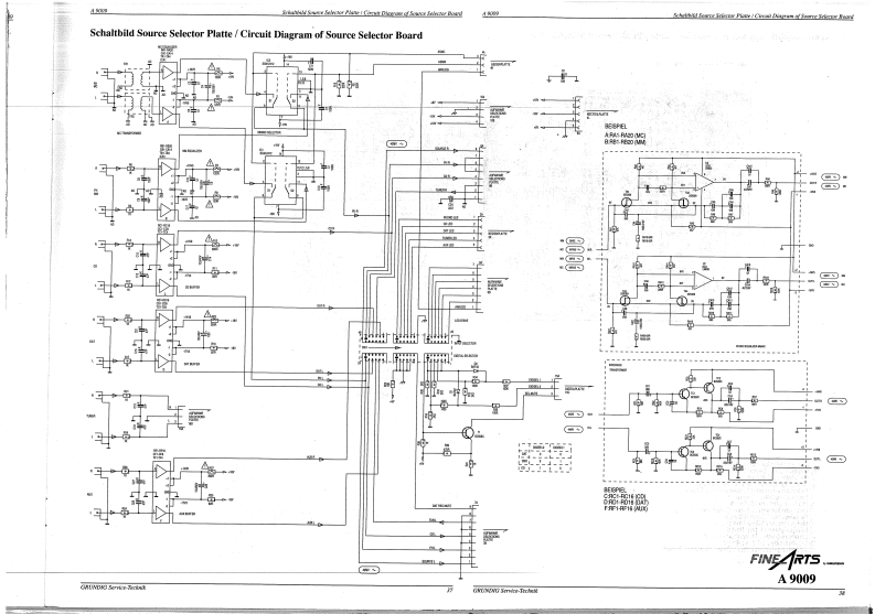 F尔T5.SERVICE MANUALHIFIService⊙Btx*32700#ManualA9009A9009(9.55136-8151/G.LA1451个ar52到立u60gcoDGBInhaltsverzeichnisContentsSeitePageTechnische Daten.2Specification2Sicherheitshinweise........3-4Safety Instructions .........3-4Ersatzteilliste...........5-9List of Spare Parts.5-9Ausbauhinweise.......10Disassembly Instructions...10Explosionszeichnung11-12Exploded View....11-12Druckplattenverbindungen.1.3-14Connections of Printed Boards…13-14Abgleich ...15Schaltbild:Circuit Diagram:.....16Notes......16NFPlatte,Kopfhorerplatte19-20AF Board,Headphone Board1920Klang-,Lautstarke-,Potentiometerplatte.....23-25Tone,Volume,Potentiometer Board........23-25Digitalplatte .....26-28,33-34Digital Board .......26-2833-34Source Selector Platte.........37-38Source Selector Board..............137-38Record Selector Platte...41-42Record selector Board41-42Bedien-,Lampen-,RC 5-Platte5-46Control,Lamp,RC5 Board........45-46Netzteil-,Netzschalter-,Infrarotplatte147-48Mains Unit,Mains Switch,Infrared Board ..............47-48Druckplattenabbildungen:lllustrations of Printed Boards:NF-Platte,Kopfhorerplatte .......17-18AF Board,Headphone Board.....................17-18Klang-,Lautstarke-,Potentiometerplatte ..................21-22Tone,Volume,Potentiometer Board......................21-22Digitalplatte.29-30 31-32Digital Board .............2930,31-32Source Selector platte.35-36Source Selector Board.35-36Record Selector Platte.39-40Record Selector Board.....39-40Bedien-,Lampen-,RC 5-Platte ...43-44Control,Lamp,RC 5 Board ..................43-44Netzteil-,Netzschalter-,Infrarotplatte.47-48Mains Unit,Mains Switch,Infrared Board......................47-48Anderungen vorbehaltenPrinted in GermanyService Manual Sach-Nr.72010-720.75Subject to alterationVK2250392Service Manual Part No.72010-720.75