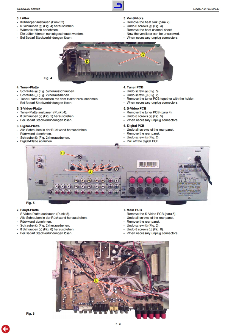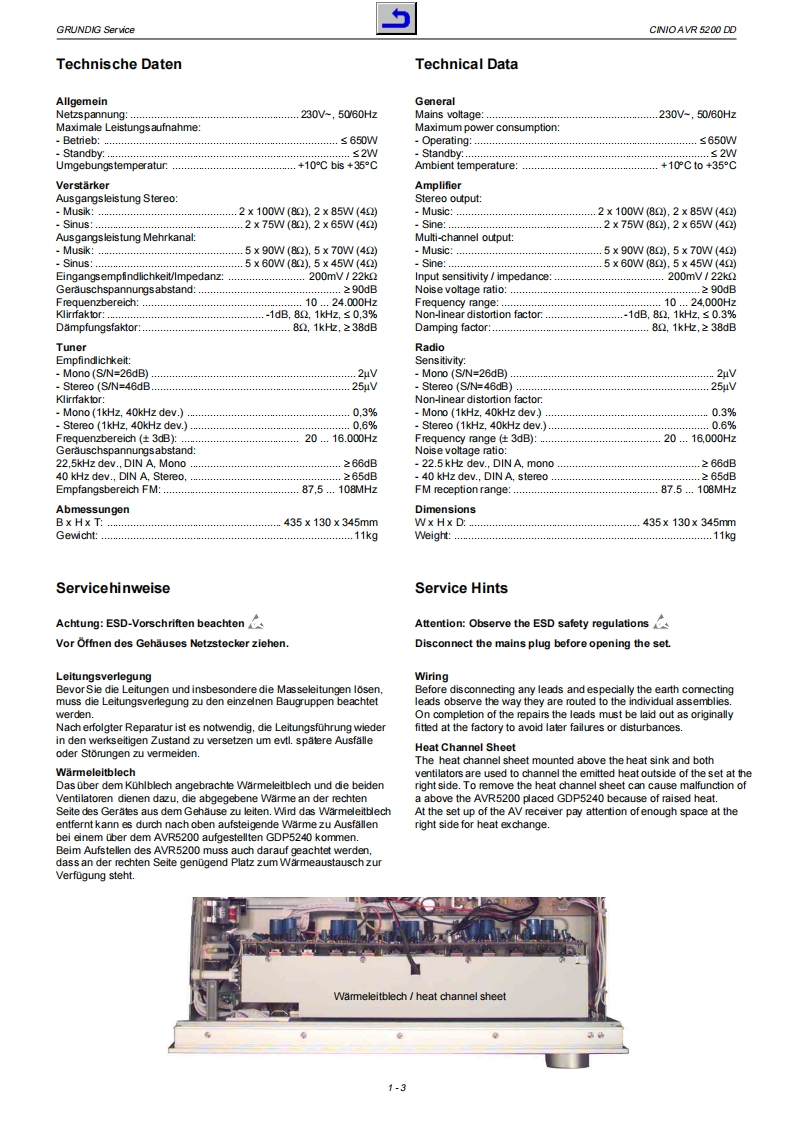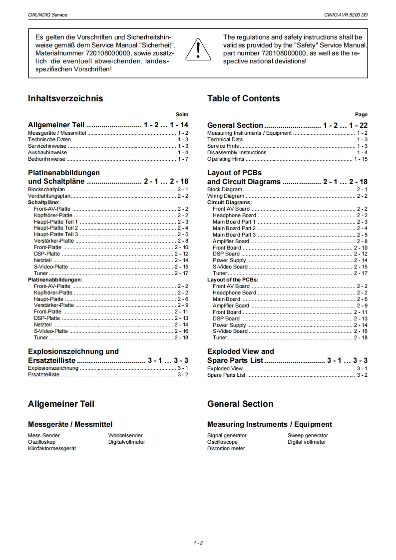 GRUDD GHiFiService ManualCINIOAVR 5200 DDGLO0150GRUnDIG Cinio066666688@0⊙6666666666Zusatzlich erforderliche Unterlogen fur den KomplettserviceAddifionally required Service Documents for the Complele ServiceServiceSicherheitSafetyMaterialnummer/Part Number 720107728000Anderungen vorbehalten/Subject to alteration.Printed in GemmanyH543·0803http://www.grundig.com