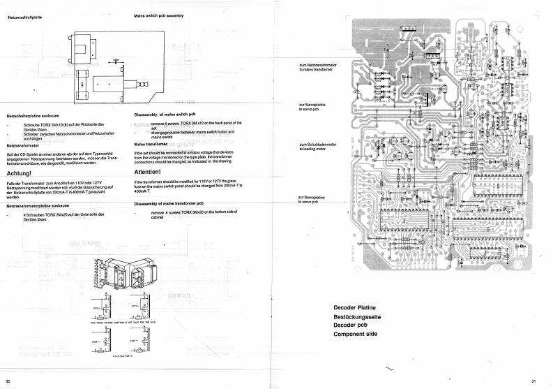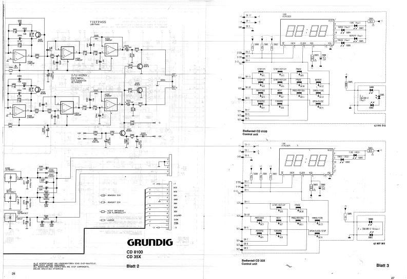 SERVICE MANUALCD81005/88CD 35 XRunoIo】InhaltsverzeichnisGBContentsSicherheitshinweise LaserSafety instructions LaserSicherheitshinweise VDE23Safety instructions VDE23Allgemeine HinweiseGeneral hintsMOS-HinweiseMOS-Handling instructionsAbkurzungen der CD-TechnikAbbreviations CD-technologieBeschreibung der Signale5-12Descriptions of signals54412Einstellungen auf der Servo-Platine13Adjustments on the servo-boardTechnische Daten14Technical dataμP.Serviceprogramm14uP-service programAusbauhinweise15Disassembling instructionsLaufwerksausbau16Disassembly of CD-drive unitLademechanismus17.18LoadingSchaltplan19-26Circuit diagram1招Bedienteil DruckplatteControl panelNetzanschluBplatte2Mains connectorDecoderplatine30-3Decoder printed circuit board/象dServoplatine32-34Servo printed circuit boardExplosionsdarstellungen35-37Exploded viewsErsatzteillisten38-44Spare parts lists
