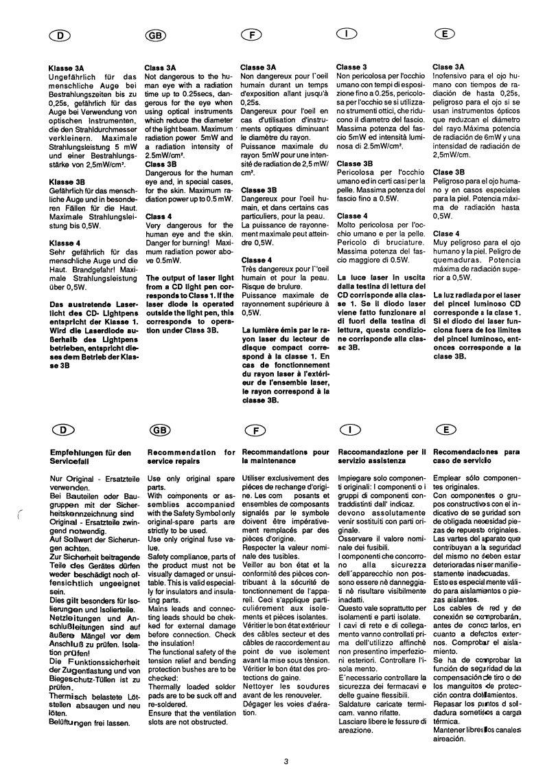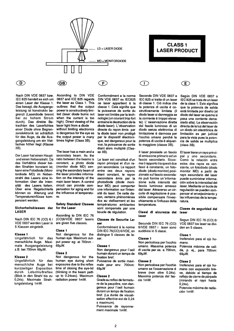 GRUDDGSERVICE MANUALCDDBtx*32700#CD815010/88GB/US88888888DInhaltGB ContentsF SommaireIndiceE IndiceSeite/Page/Pagina/Pagina/PageSicherheitshinweiseSafety instructionsPrescriptions dePrescrizioni dePrescripciones desecuritesicurezzaseguridadAllgemeine HinweiseGeneral notesGeneralitesNote generaliGeneralidades2.5Schaltungsbeschrei-Circuit descriptionDescription de circuitFunzione servocircui-Descripcion debungtrocircuito6-18OszillogrammeOscillogramsOscillogrammesOscillogrammiOscilogramas19Technische DatenTechnical DataCharacteristiquesDati tecniciDatos tecnicos20SchaltplanCircuit diagramSchema de mentageSchema elettricoAbEsquema21-29Abkurzungen derAbbreviations CDAbbreviations de labreviazioni dellaAbreviaturas de laCD-Techniktechnologietechique CDTechnica CDtecnica CD30-31Druckplattendarstel-Component layoutRepresentation deslllustrazione delleReproduccion de lalungencircuits imprimespiastre stampateplaca de C.I.32.36AusbauhinweiseDisassemblingInstructions dede-SmontaggioInstrucciones para elinstructionsmontagedesmontaje37-39AbgleichAlignmentInstructions deInstruzioni di taraturaInstrucciones de40-42reglagesajusteChip-TechnikChip TechnologyTechnologie CMSTecnica ChipTecnica de Chip43.44FluBdiagramm ServoFlowchart ServoSchema fonctionnelFunzione servoDiagrama defunziones45-46ErsatzteillistenSpare parts listsListe de pioces de-Lista ricambiLista de piezas detacheesrepuestos47-51