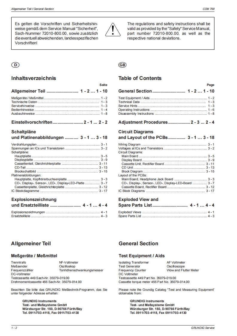 GRUnD GService ManualAudioCDM 700-Grundig ServiceHotline Deutschland...Ma.fF.B.0016.30hrTechnik:TV/SAT0180/5231841VCR/LIveCam0180/5231842HIFI/Audlo0180/52318.43Car Audlo0180/5231844elekommunikation0180/5231845Fax:0180/5231851ErsatzleikBestelannahmeTelefon:0180/5231840Fax:0180/5231850○○○c兴aolo0258CRUnDIGGRUnDIGZusa tzlich er forderl icheAdditionally requiredService Manuals for the Complele ServiceBtx*32700#ServiceServiceManualManualSachnummerPart Number 72010-755.70CDM 700SicherheitAnderungen vorbehaltenSafetySubject to alterationSach.Nr./Par NoSach.Nr/Part NoPrinted in Germany72010755.7072010800.00VK2311097