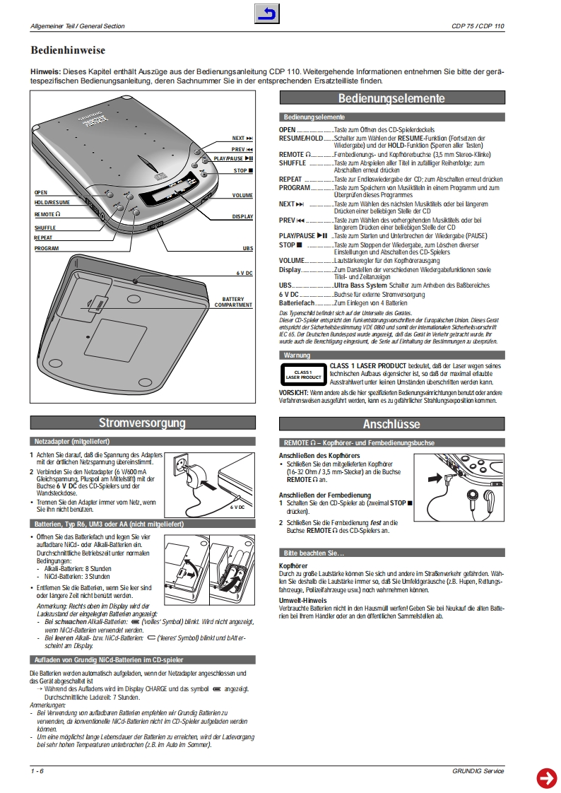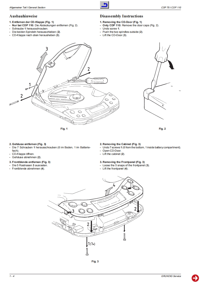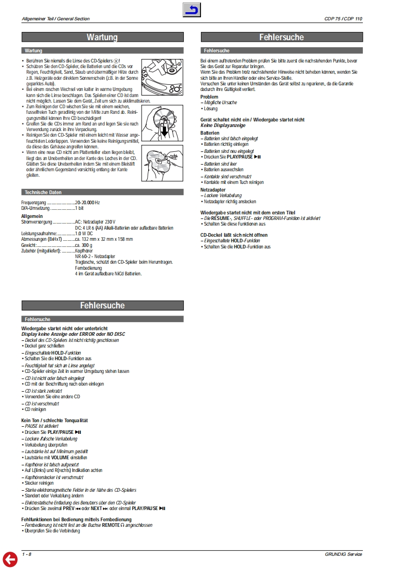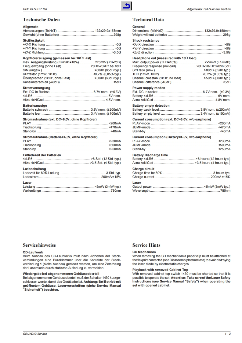 Grundig-CDP75-dm-维修说明书手册含电器原理图