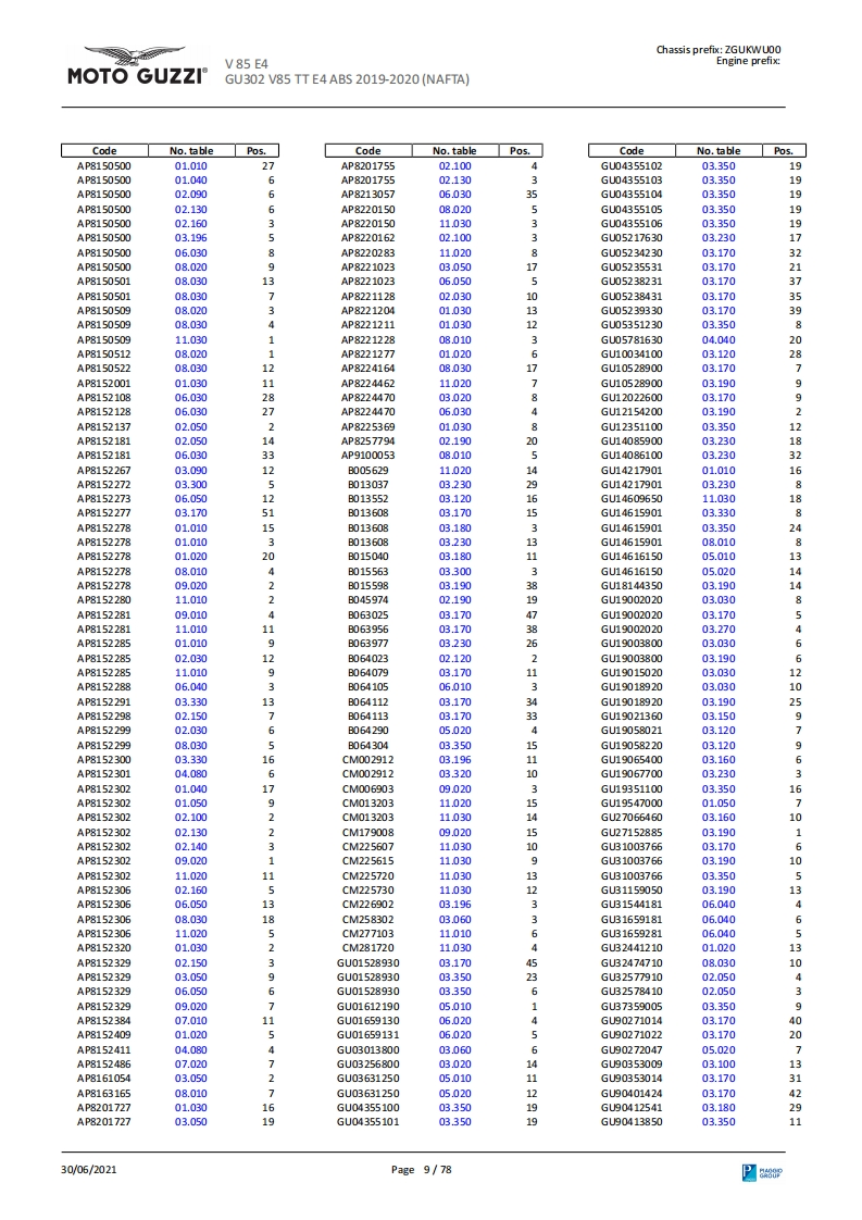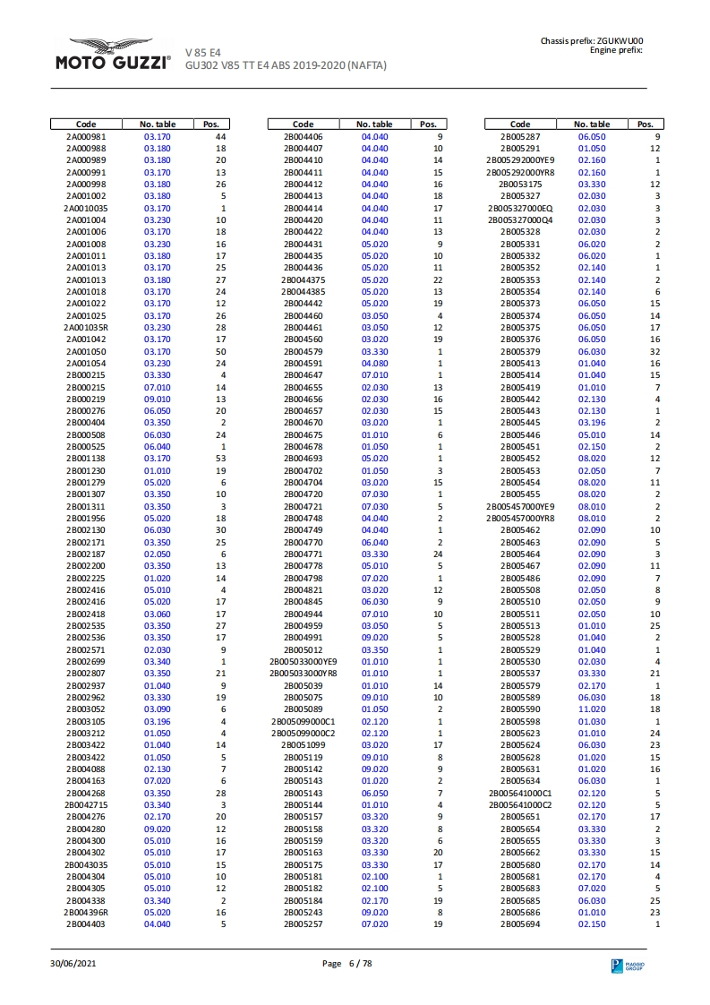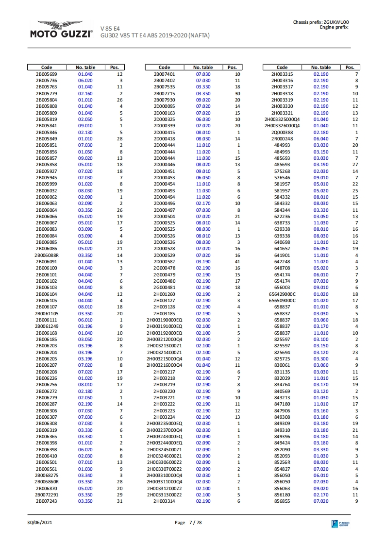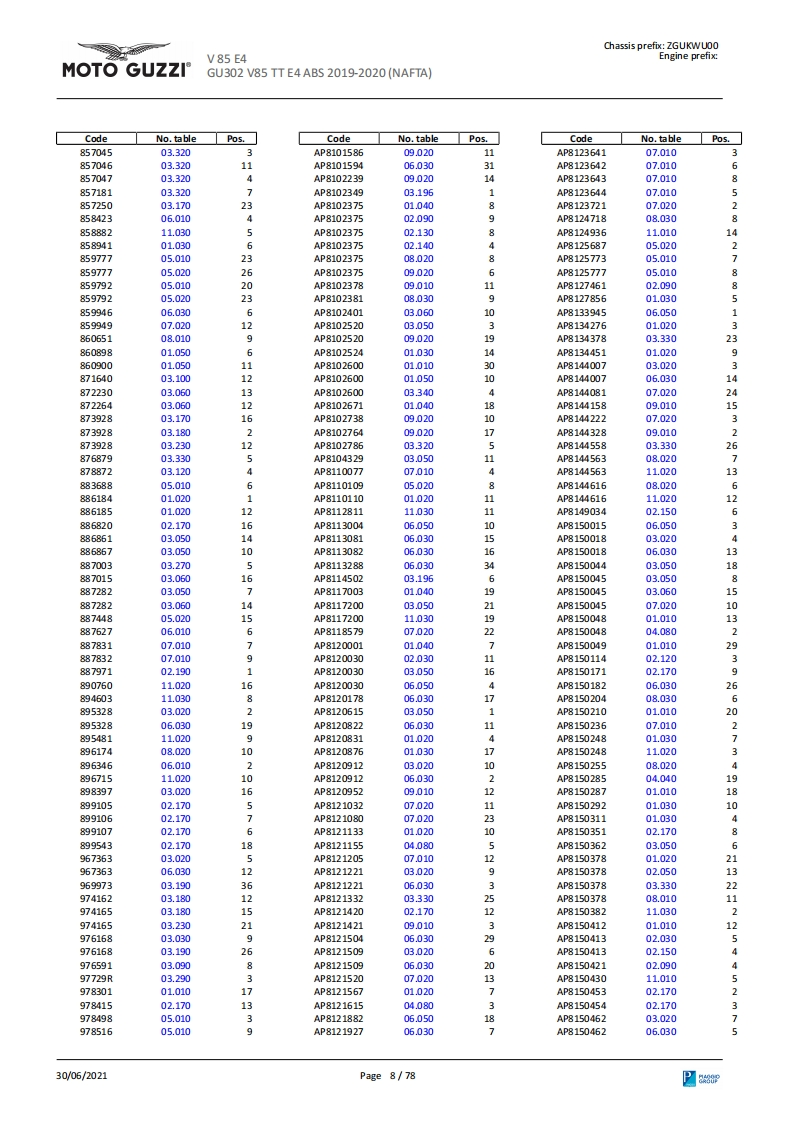 MOTOGUZZI摩托古兹摩托车2020-V85TT-PARTS维修操作说明书手册找手册网10小时前发布关注私信12.52MB78页048MOTOGUZZI摩托古兹摩托车2020-V85TT-PARTS维修操作说明书手册此内容为付费资源,请付费后查看¥19¥21黄金会员免费钻石会员免费立即购买您当前未登录!建议登陆后购买,可保存购买订单付费资源 第1页 / 共78页 第2页 / 共78页 第3页 / 共78页 第4页 / 共78页 第5页 / 共78页 第6页 / 共78页 第7页 / 共78页 第8页 / 共78页 第9页 / 共78页 第10页 / 共78页 试读已结束,还剩68页,您可下载完整版后进行离线阅读 THE ENDMOTOGUZZI 文本预览 PPIAGGIOGROUPMoto GUZZISPARE PARTS CATALOGUEV85 TT E4 ABS 2019-2020(NAFTA)Chassis prefix:ZGUKWU00Engine prefix:V85E4GU302 查看更多 收起部分 喜欢就支持一下吧收藏