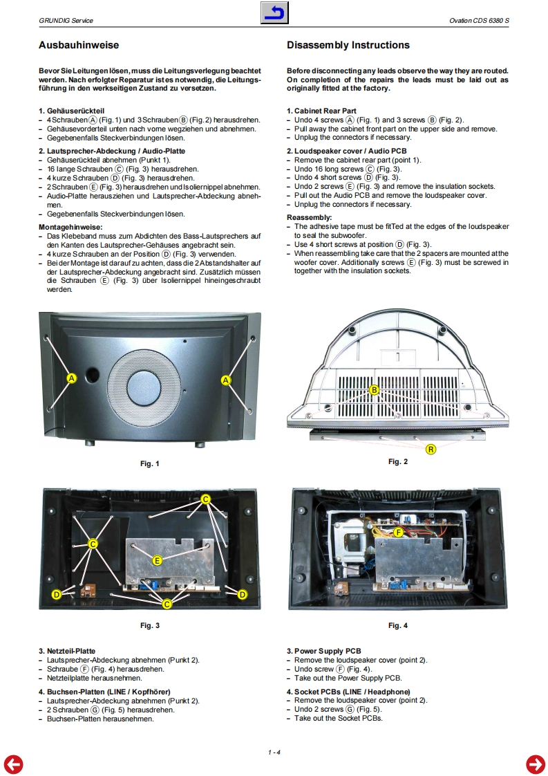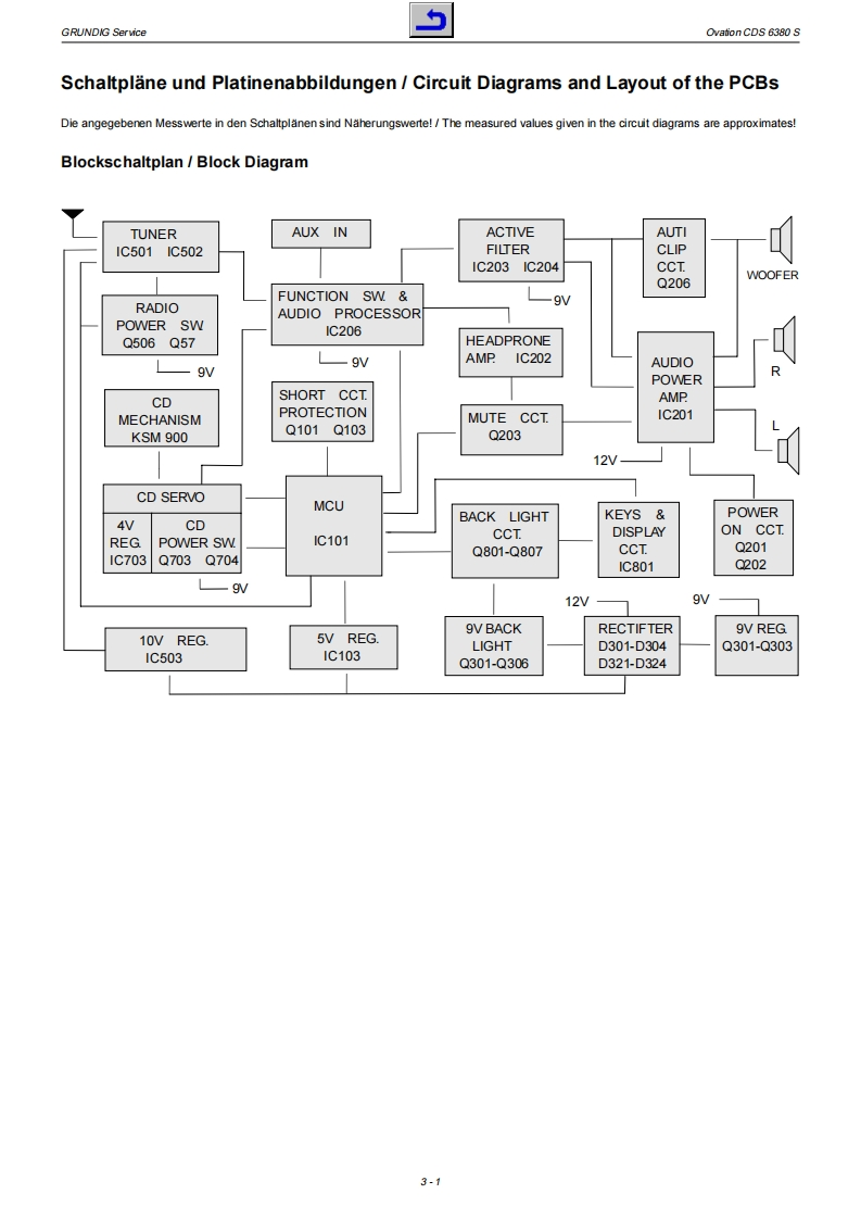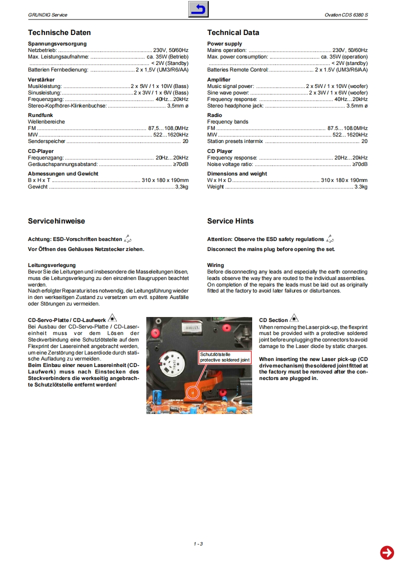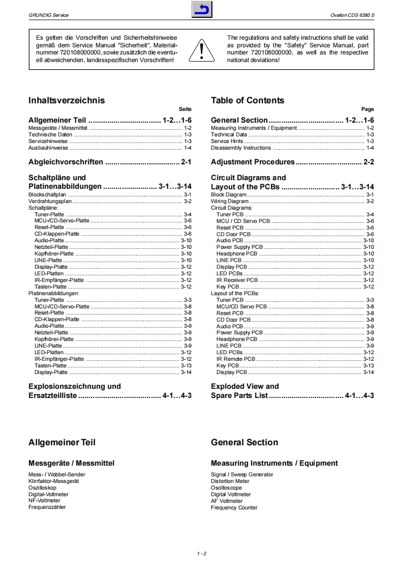 GRUDDGHiFiService ManualOvationCD56380SGLO100001ooaterforderliche Unterlogen fir den KomplettserviceAddifionally required Service Documents for the Complete ServiceServiceManuaSicherheitSafety720103000000Materialnummer/Part Number 720107730500Anderungen vorbehalten/Subjed to alterationH-S43 1103.Printed in Germanyhttp://www.grundig.com
