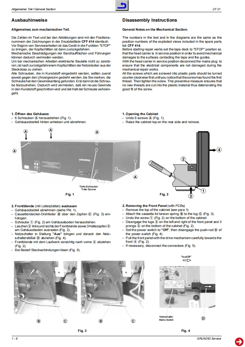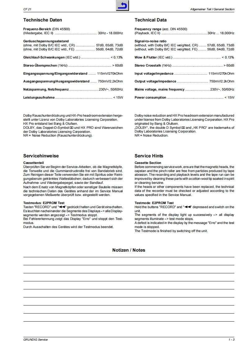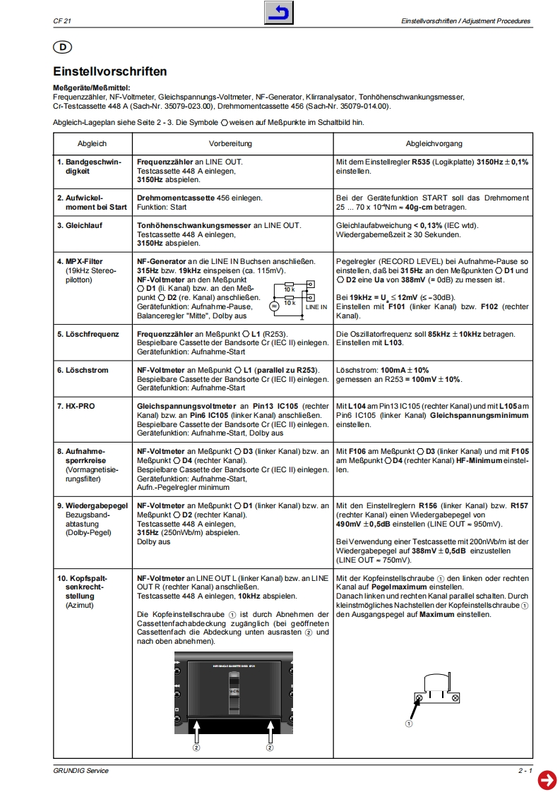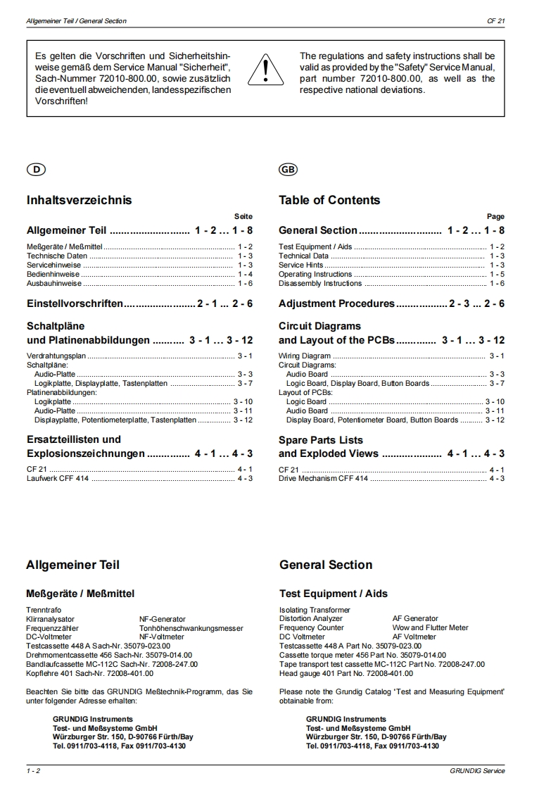 GRUnD GService ManualHifiCF 21-Grundig ServiceHolline Deutschland...…Ma.f.B.0016.30hrTechnik:TV/SAT0180/5231841VCR/LIveCam0180/5231842HIFI/Audlo0180/5231843Car Audlo0180/5231844Telekommunikation0180/5231845Fax:0180/5231851ErsatzleikBestelannahmeTelefon:0180/5231840Fax:0180/5231850■■■■■■■GRunDIG⊙⊙FINEZRTS▣5⊙g黑a口口匹网●ooLiE MOEZusatzlich erforderlicheUnterlagen fur den KomplettserviceAdditionally requiredService Manuals for the Complele ServiceBt*32700#ServiceServiceManualManualSachnummePart Number 72010-755.60CF21SicherheitAnderungen vorbehaltenSafetySubject to alterationSach-Nr/Pat NoSad-Nr/Part NoPrinted in Germany72010-755.6072010-800.00VK2311097