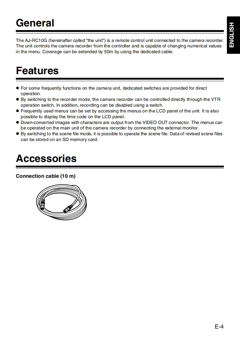 PanasonicOperating Instructions/Bedienungsanleitung/Mode d'emploi/lstruzioni per I'uso/Instrucciones de funcionamiento/操作手册/取圾說明書Remote Control Unit/Fernsteuereinheit/Module de telecommande/Unita per il comando a distanza/Unidad de control remote/摄像机遥控器/少毛一卜门ソ卜口一儿ユ二y卜ModeI No.AJ-G10:阿可可可阿oBefore operating this product,please read the instructions carefully and save thismanual for future use.Bitte lesen Sie vor Inbetriebnahme dieses Produkts die Anleitungen sorgfaltig durchund bewahren Sie dieses Handbuch fur spatere Verwendung auf.Avant de vous servir de ce produit,veuillez lire attentivement les instructions etenregistrer ce manuel pour une utilisation ulterieure.Prima di utilizzare questo prodotto,leggere attentamente le istruzioni di questomanuale e conservarlo per riferimento futuro.日Antes de poner este producto en funcionamiento,lea atentamente las instruccionesy conserve este manual para uso futuro.本使用本产品前,请仔细阅读本说明书,并妥善保存以备日后参考。語買上儿龙龙老、ま乙七亿莎b比与c心1未儿龙。乙D取极脱明書在大<蔬D上、正L<书使L)<龙这L1。特忙「安全上①心注意」:、心使用前亿必李扩蔬L龙老、安全忙书使<龙达L。书蔬动忙在一龙莎上这、保証書上一緒亿大切亿保管、必要存七志亿蔬动<龙达L。F0706T0-F回VQT1A65Printed in Japan