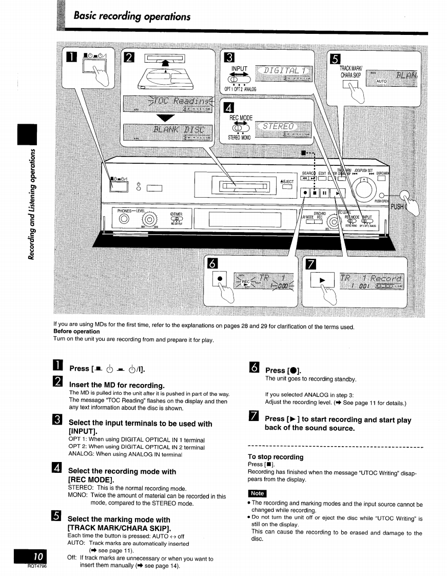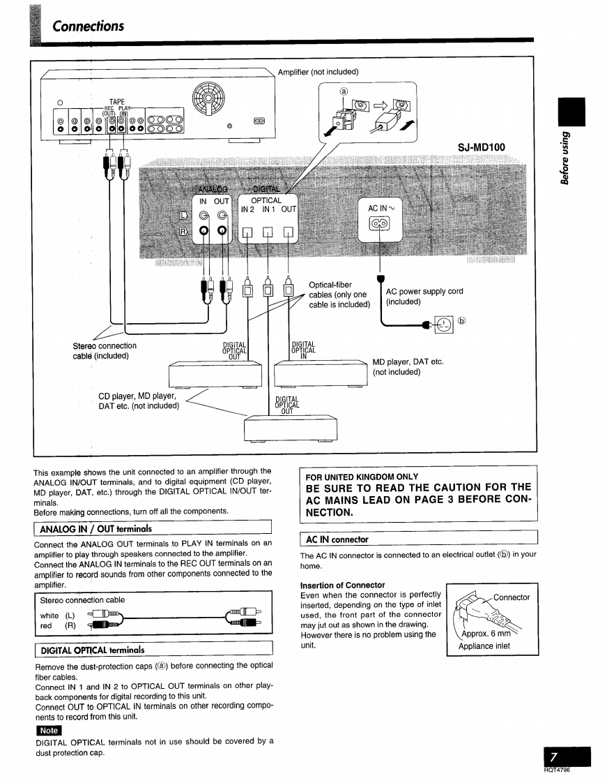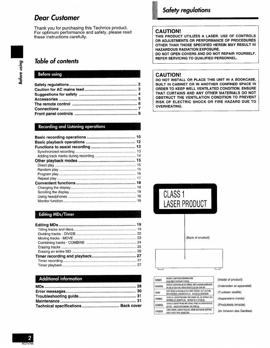 Minidisc DeckTechnicsSJ-MD100Operating Instructions盟圈Note:The "EB"indication shown on the packing casendicates United Kingdom.Before connecting.operating or adjusting.thisproduct,please read these instructions completely.Please save this manual.EBRQT4796-B