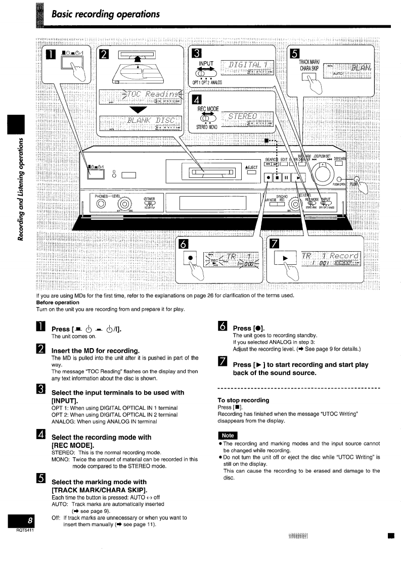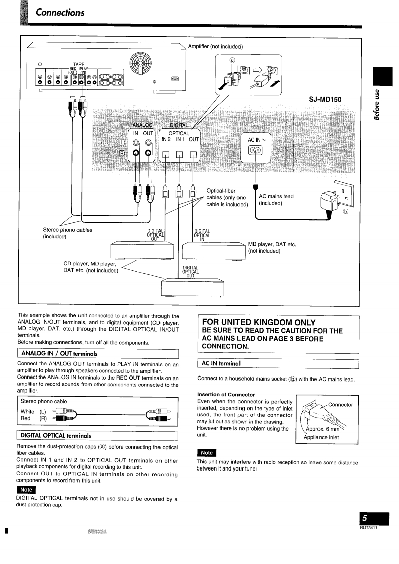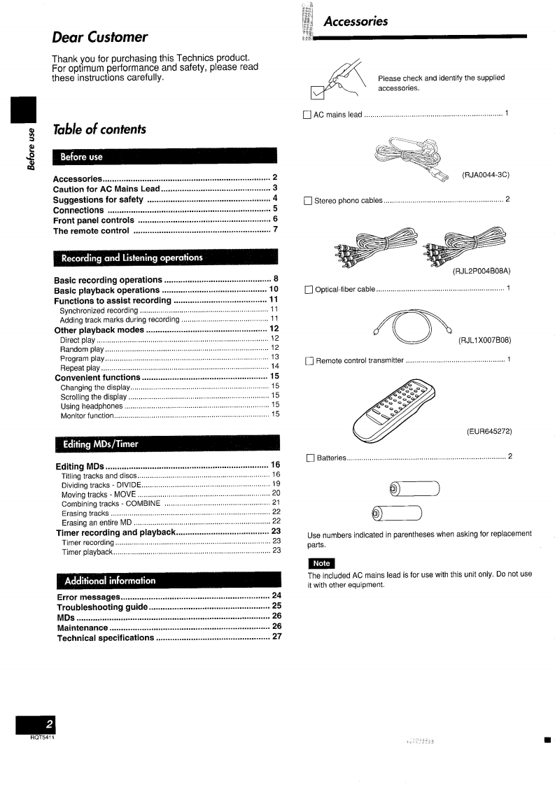 TechnicsMinidisc DeckOperating InstructionsModel No.SJ-MD150MiniD腾能Note:The "EB"indication shown on the packing:caseind cates Unlted Kingdom.Before connecting,operating or adjusting thisproduct,please read these instructlons completely.Please keep this manual for future reference.EBRQT5411-B